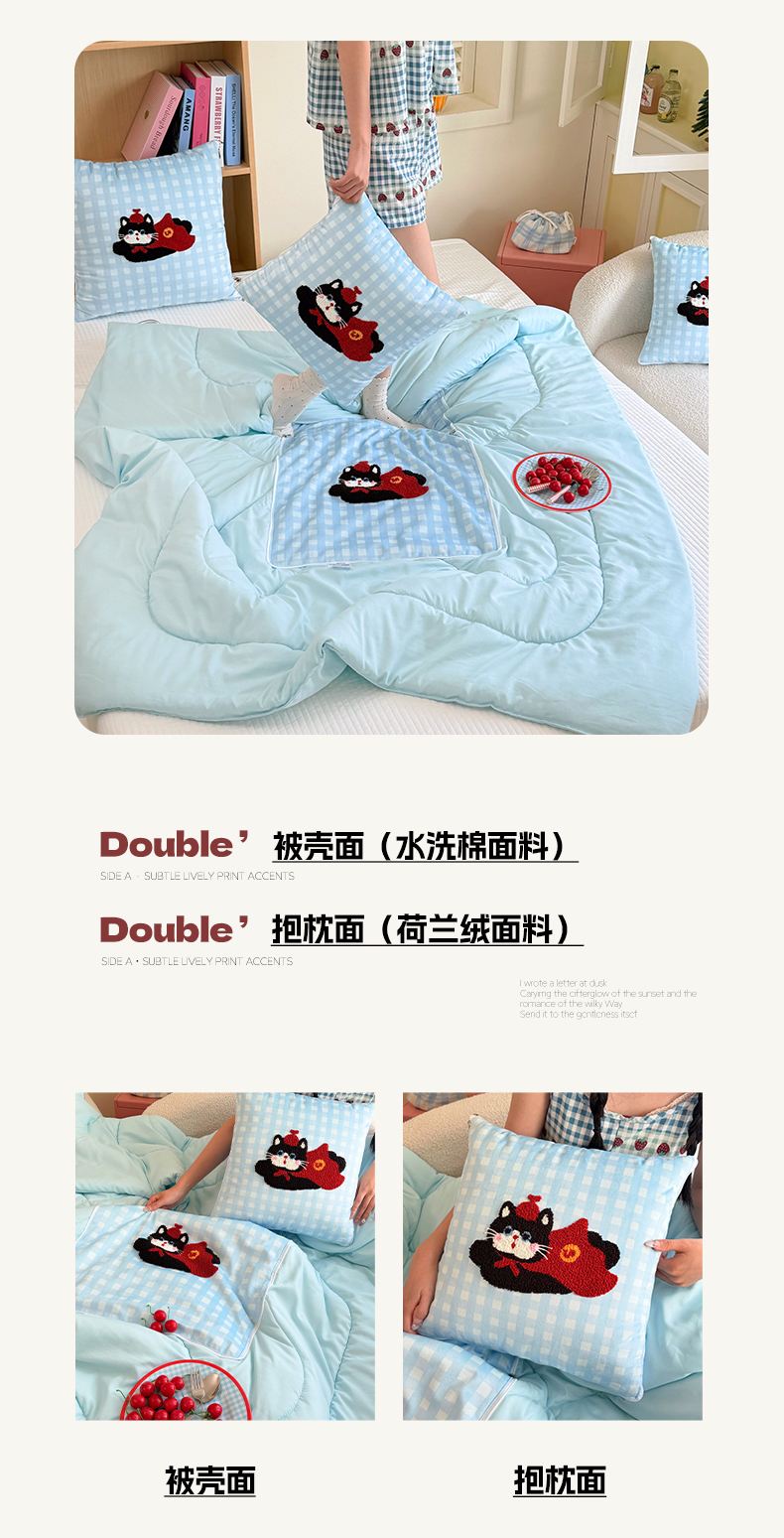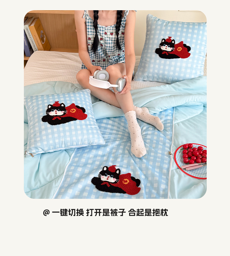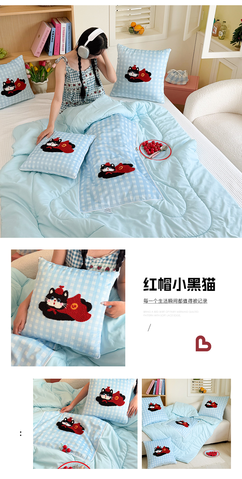 商品名称:番茄+ 2026新款ins风卡通毛巾绣抱枕被 红帽小黑猫