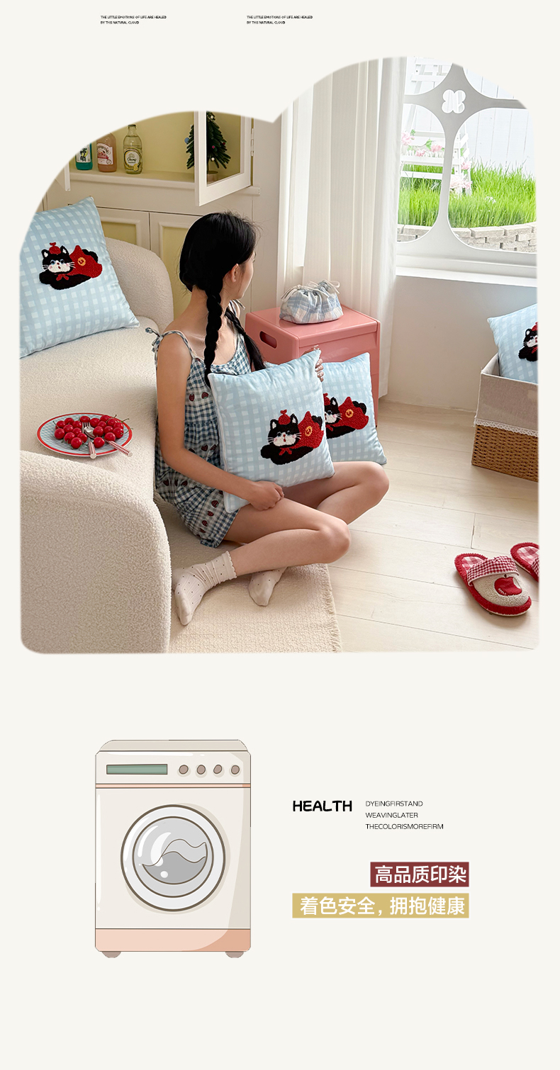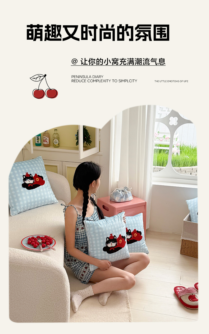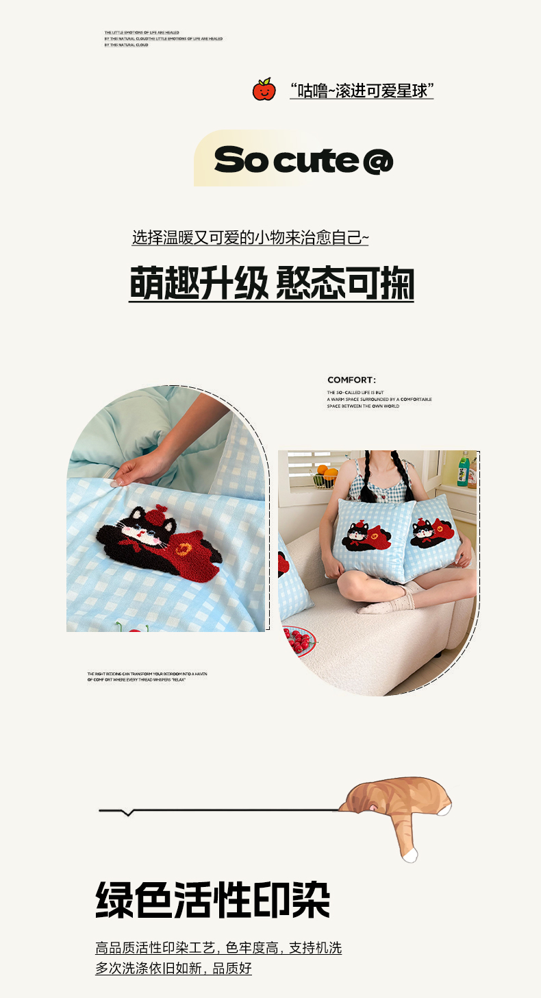 商品名称:番茄+ 2026新款ins风卡通毛巾绣抱枕被 红帽小黑猫