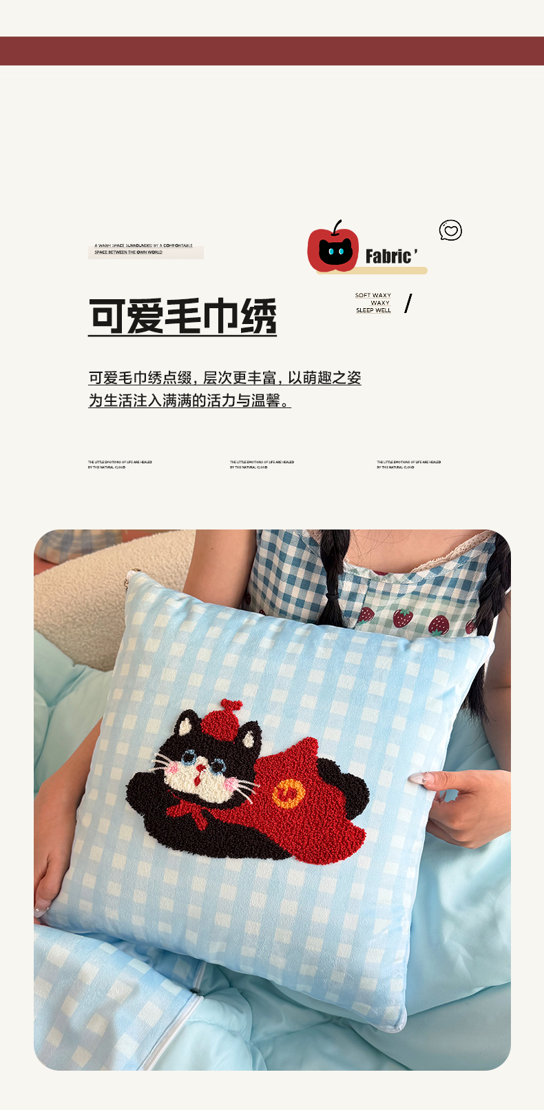 (总)番茄+ 2026新款ins风卡通毛巾绣抱枕被,红帽小黑猫,苹果熊,薯条小狗,甜系小马,星星小马