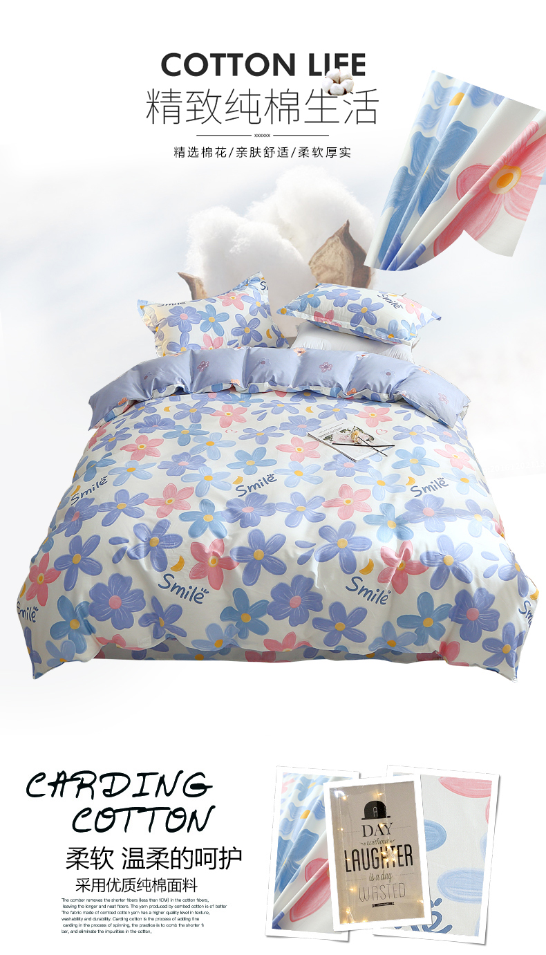当前位置: 91家纺网 > 商品网购 > 床品套件 > 四件套 > 全棉活性四件套 > 馨雅家纺 2026新款简欧纯棉印花多规格四件套 浅浅花漾