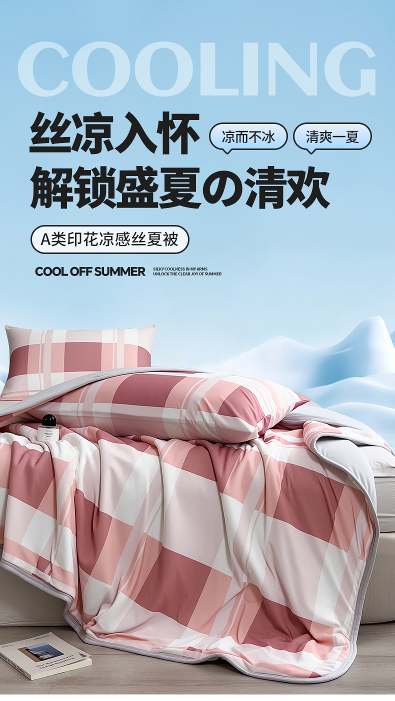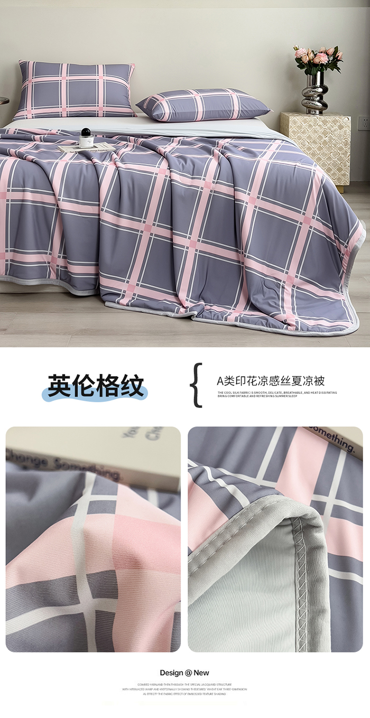 (总)世纪绒品 2026新款A类印花凉感丝夏被夏凉被空调被,巴宝格,豆沙格,海洋蓝格,米灰竖条,莫兰条格,雾蓝大格,英伦格纹