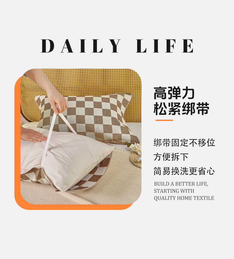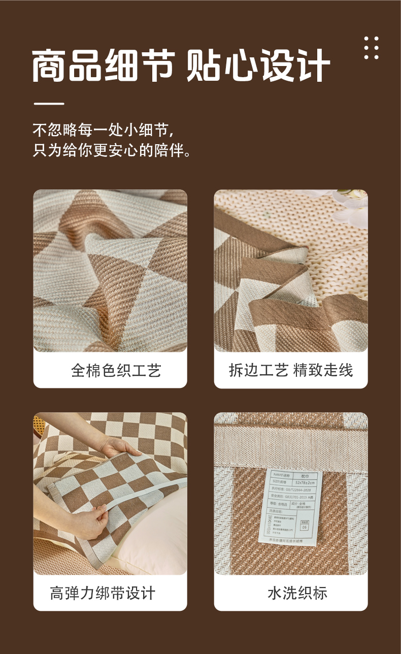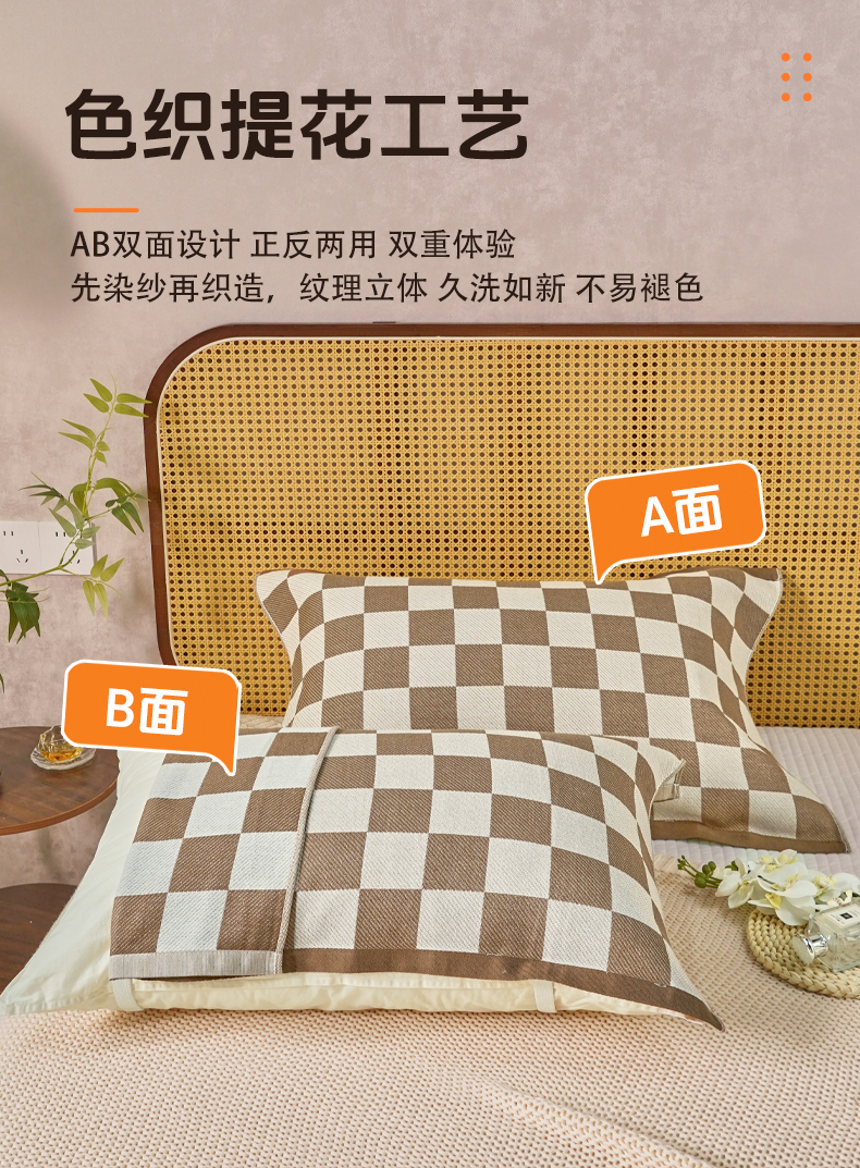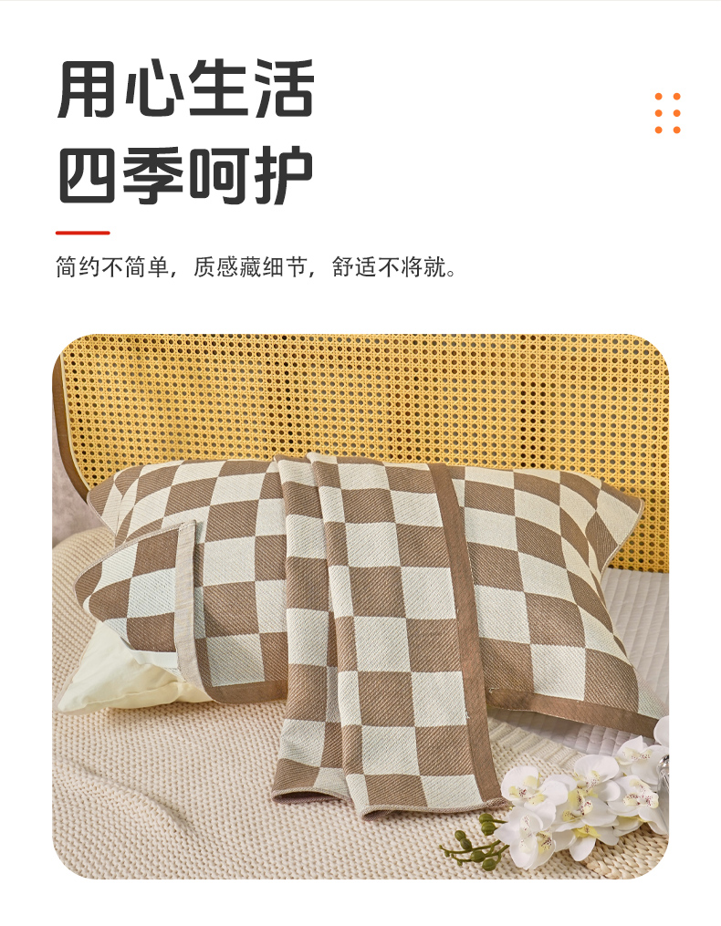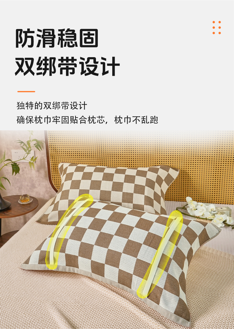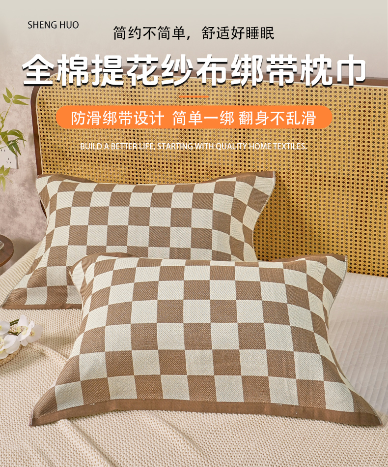 商品名称:棠薇家纺 2026新款绑带款枕巾全棉纯棉四层斜纹纱布枕巾 防滑防脱落纯棉枕头巾 绑带款棋盘格