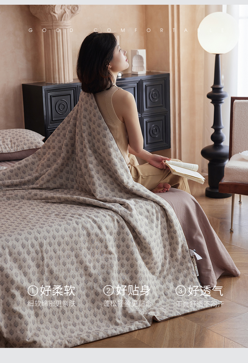 商品名称:丽笙被芯 2026新款全棉双层纱印花夏被夏凉被空调被 悠娜