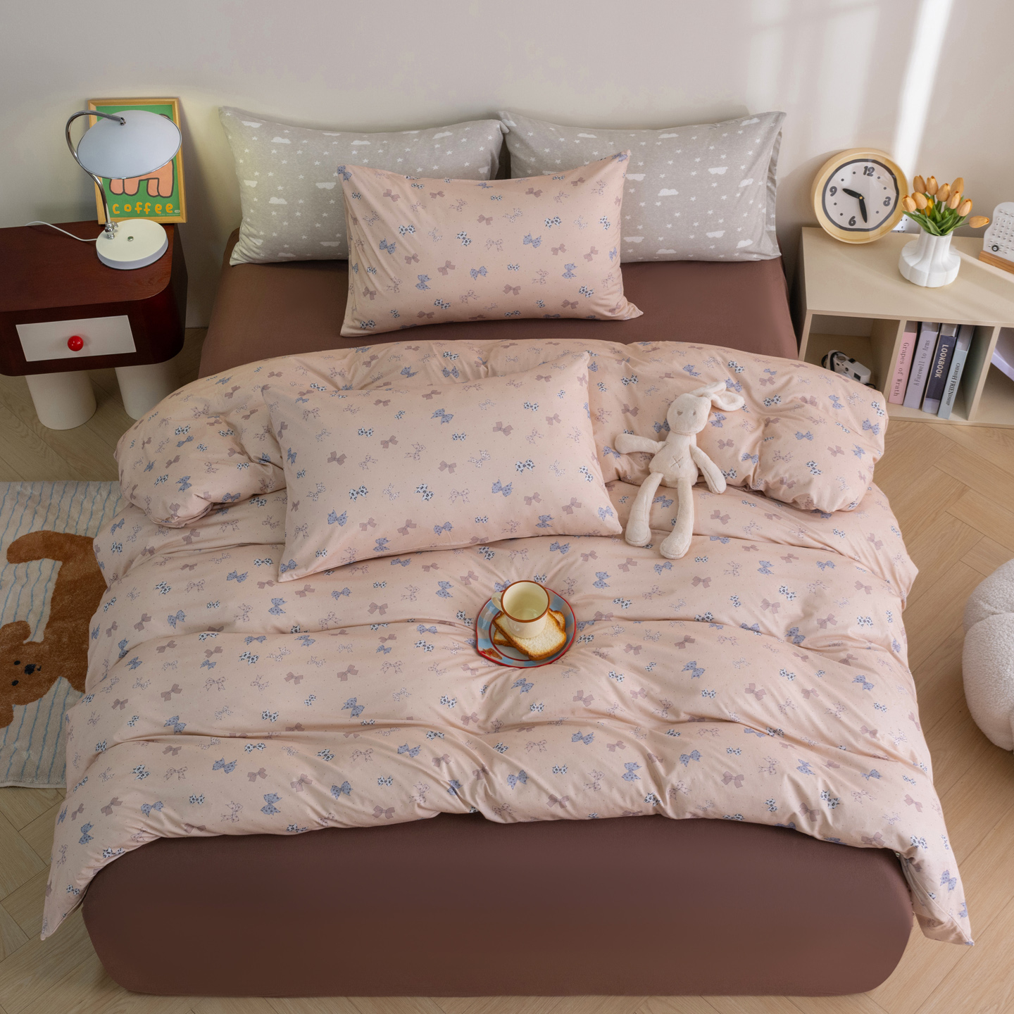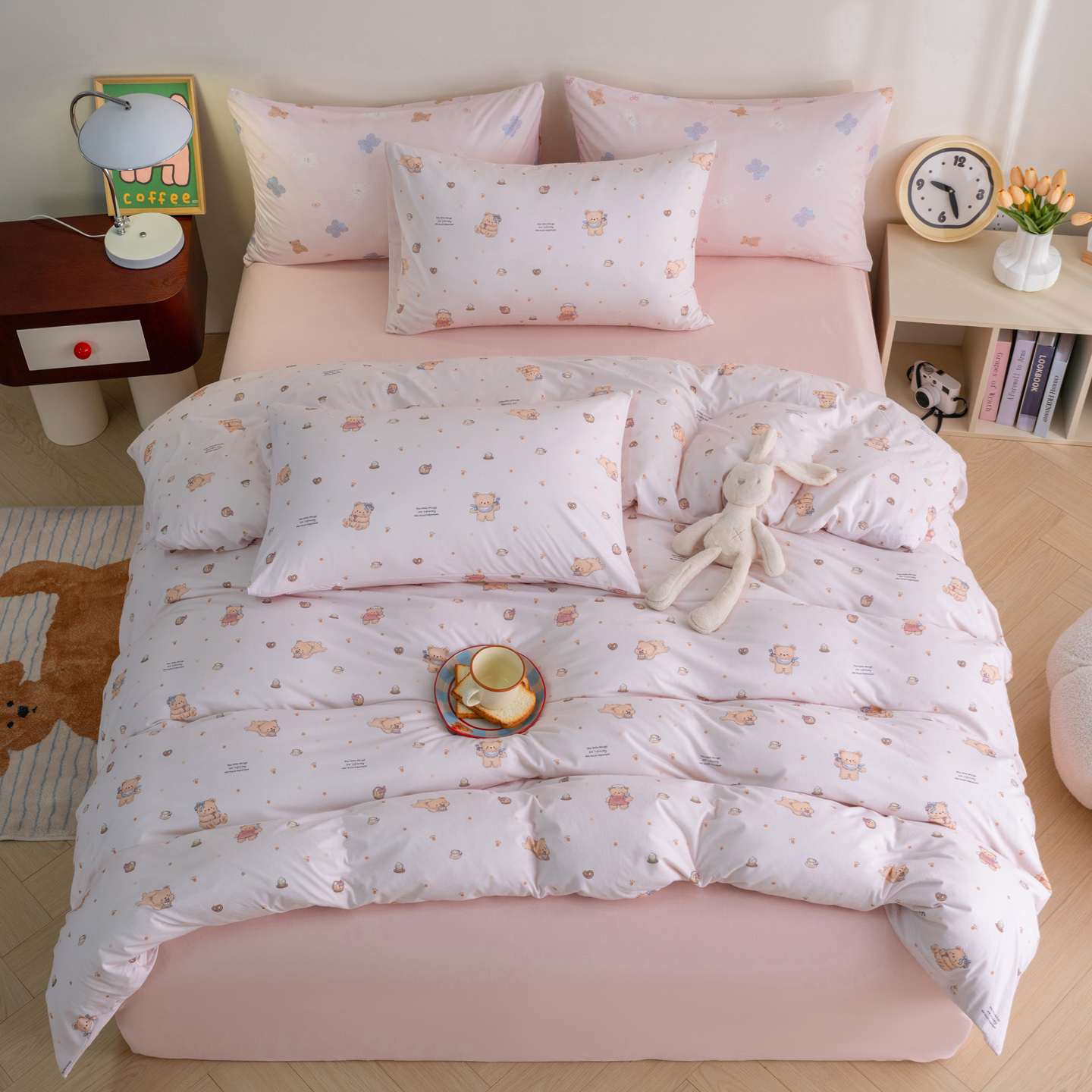 梦可莱家居 2026新款全棉纯棉针织棉印花可爱卡通系列四件套 爱心熊