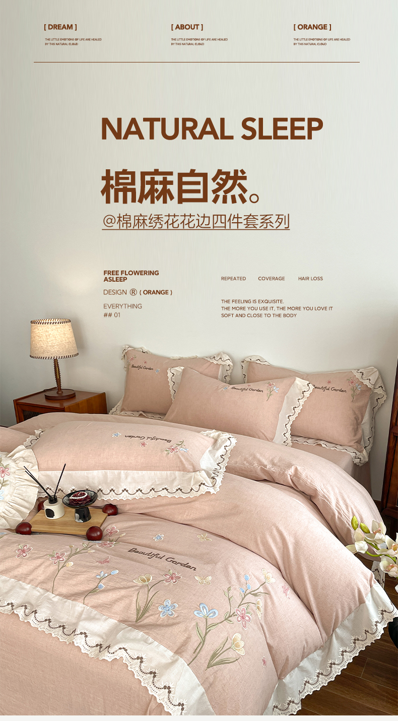 当前位置: 91家纺网 > 商品网购 > 床品套件 > 四件套 > 棉麻四件套 > (总)如一 2026新款棉麻绣花花边款全棉亚麻四件套
