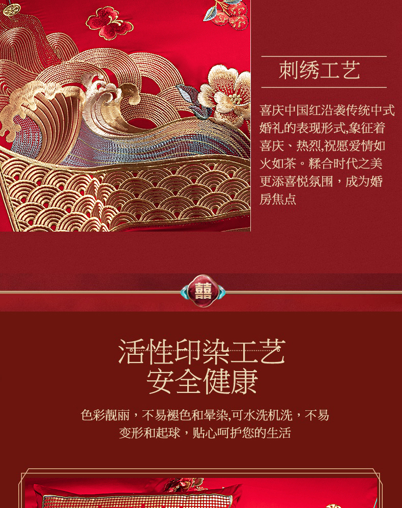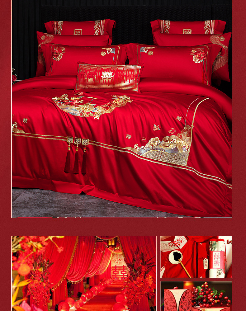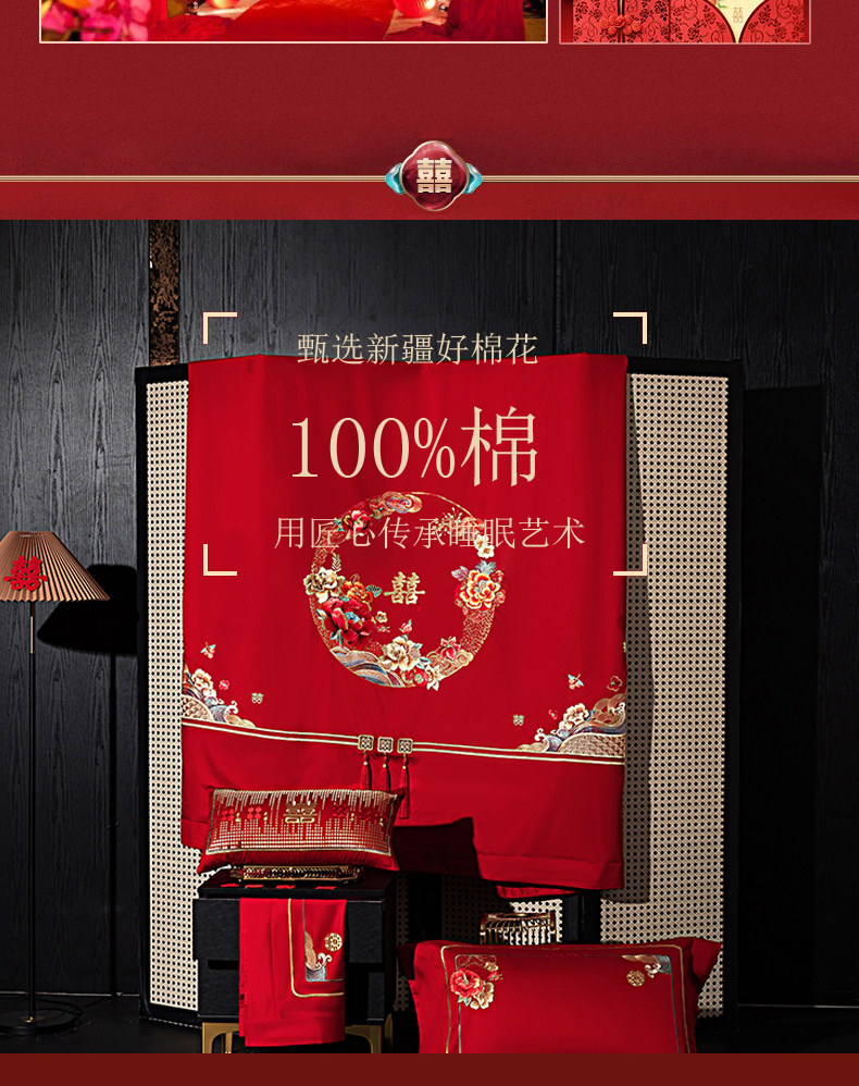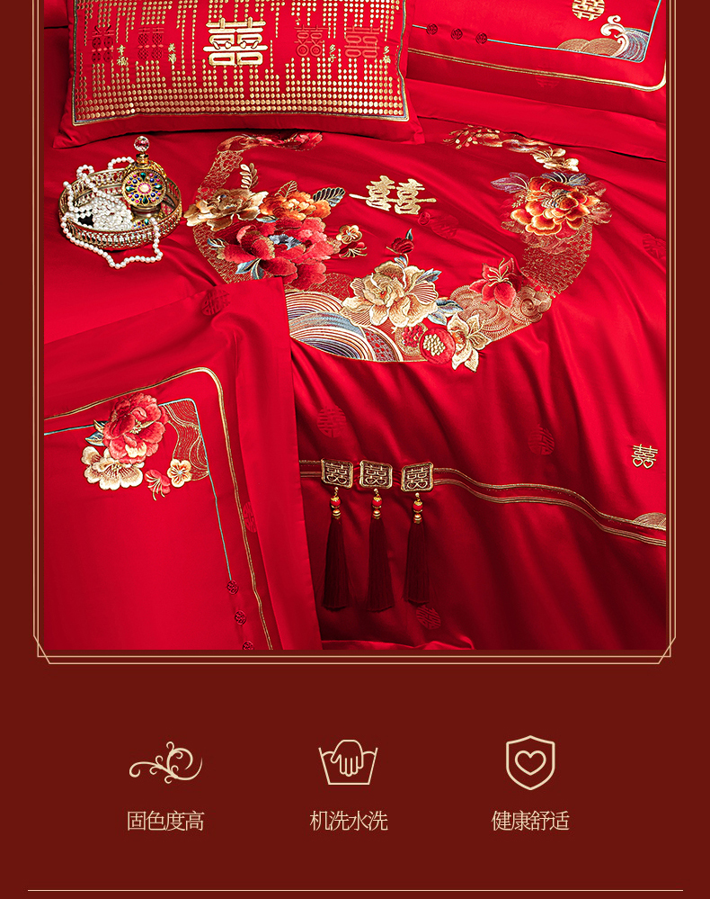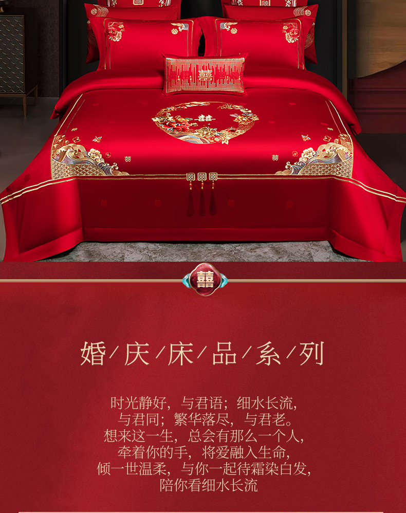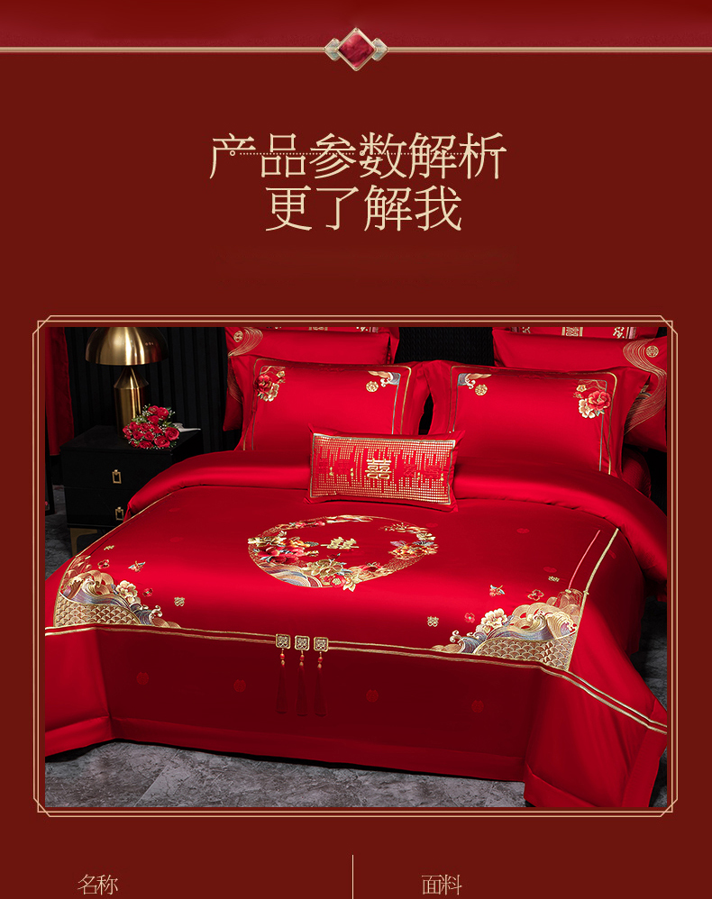 当前位置: 91家纺网 > 商品网购 > 床品套件 > 四件套 > 长绒棉四件套 > 蒂爵 2026婚庆新疆长绒棉纯棉原版大绣花婚庆四件套多件套340系列 盛世红妆