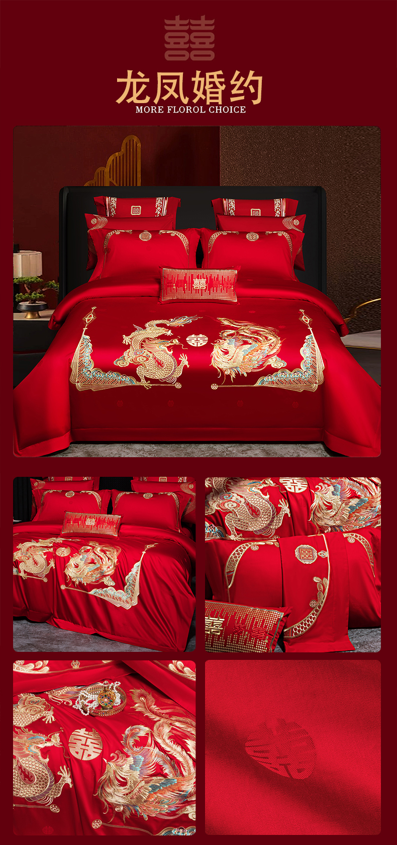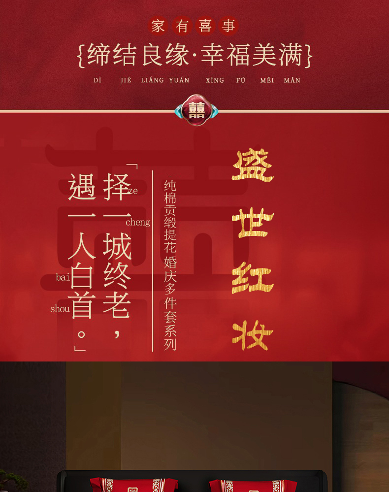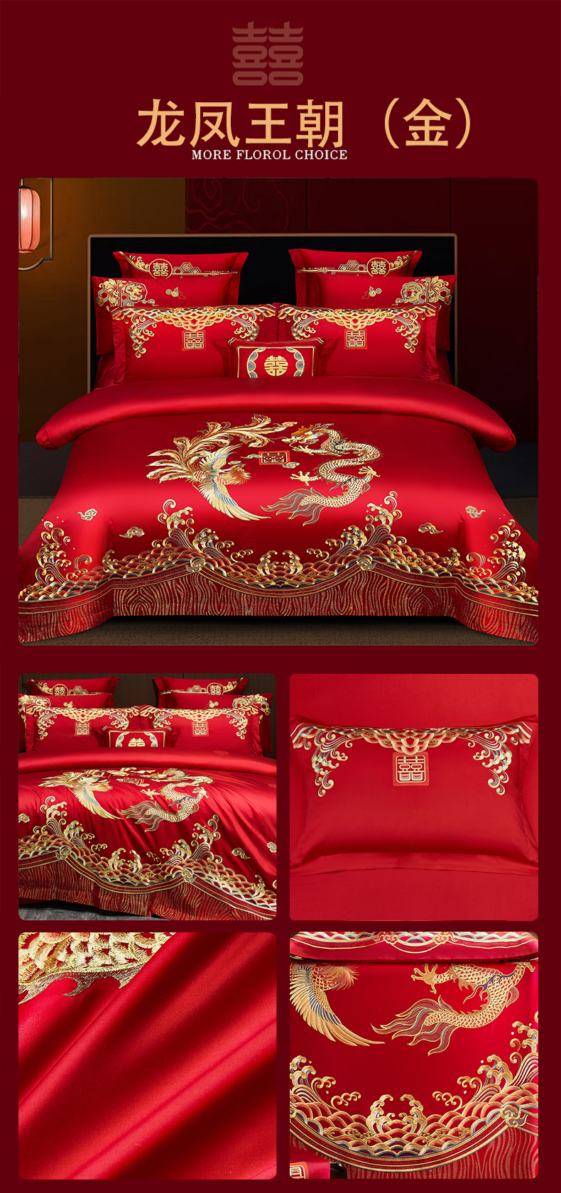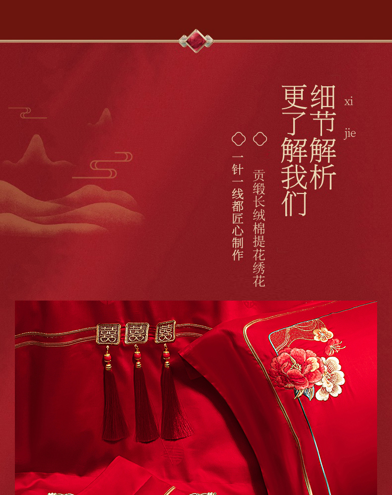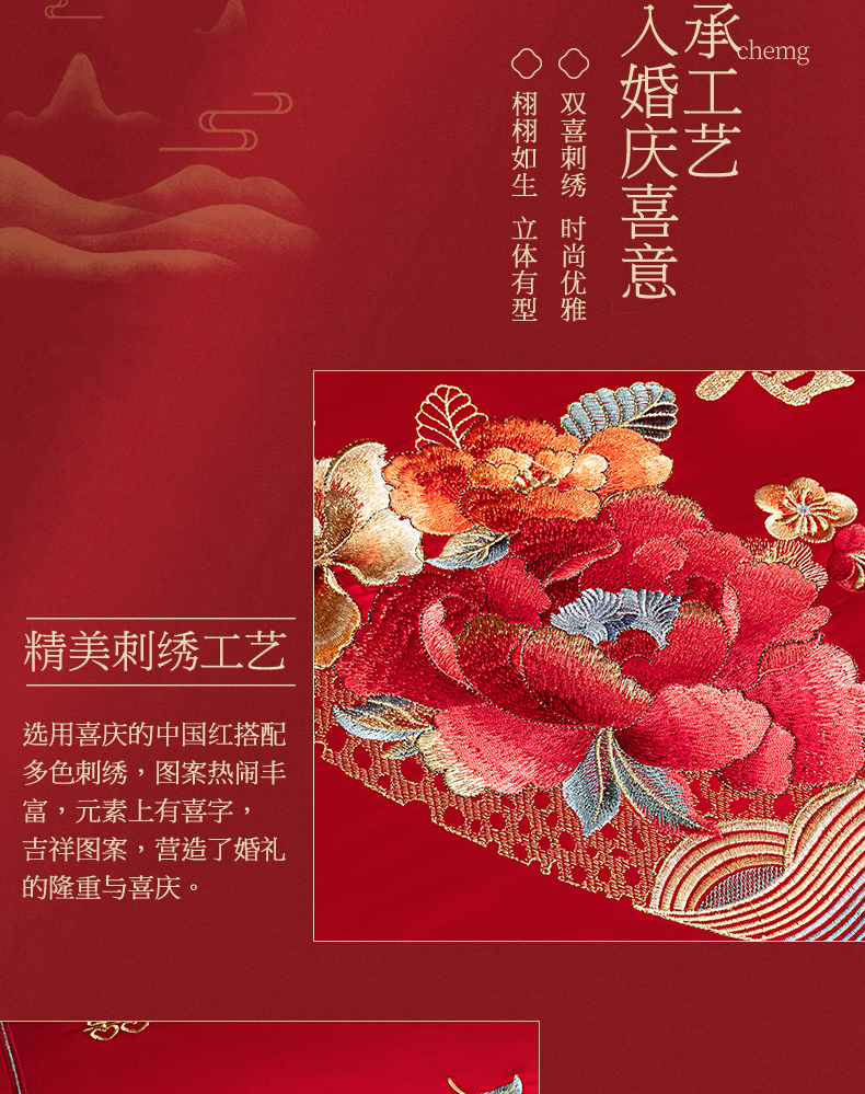 当前位置: 91家纺网 > 商品网购 > 床品套件 > 四件套 > 长绒棉四件套 > 蒂爵 2026婚庆新疆长绒棉纯棉原版大绣花婚庆四件套多件套340系列 盛世红妆