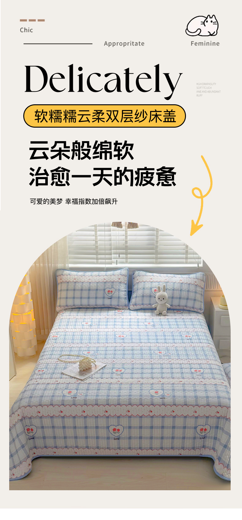 (总)悠米悠家 2026春夏新款木棉双层纱单床盖 床盖单件,Kitty·冬日甜梦,密语甜梦,松间花熊,青屿花园,赫本日记,格调蝶韵,雾岛花眠,花漾玫瑰,甜心Kitty日记,云樱格语,甜莓小熊,花漾萌宠,晨间花园,可可萌熊,萌趣派对,蜜熊絮语,南瓜田园记,奶咖小熊,趣味乐园,萌趣LABUBU,墨色花卉,星梦精灵仔,告白气球,海盐甜玫梦,温软蝶梦,云间小铁道,焦糖花境