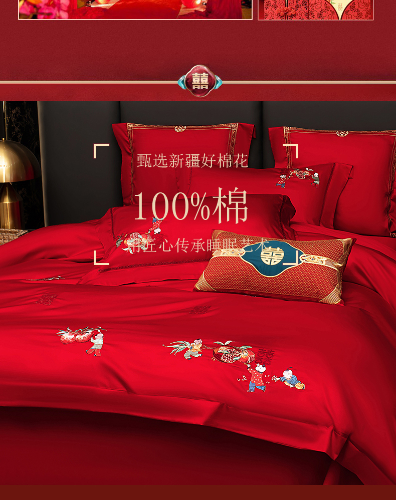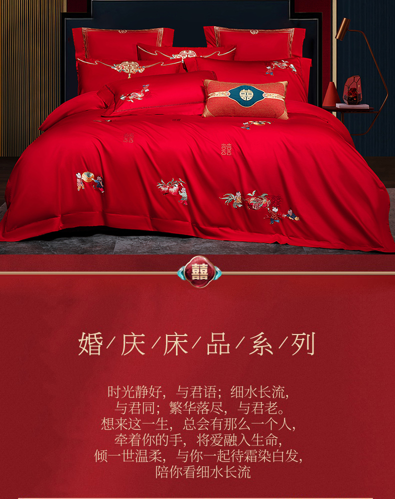 当前位置: 91家纺网 > 商品网购 > 床品套件 > 四件套 > 婚庆四件套 > 蒂爵 2026年100支婚庆长绒棉纯棉时尚小红书爆款刺绣婚庆四件套多件套280系列 才子佳人