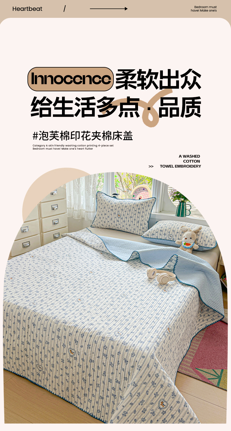 当前位置: 91家纺网 > 商品网购 > 床品套件 > 四件套 > 其它四件套 > 恒尚居 2026新款A类贝壳绣泡芙纱床盖四套件泡芙棉双层纱床垫床褥 柔蓝爱心马