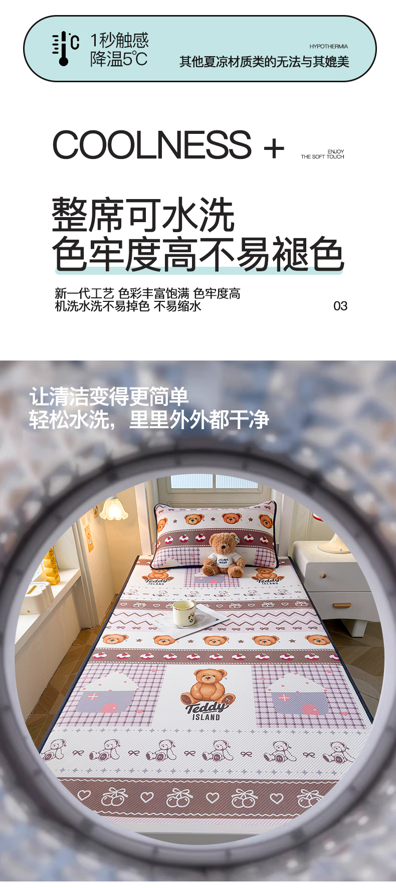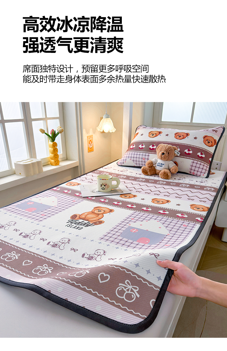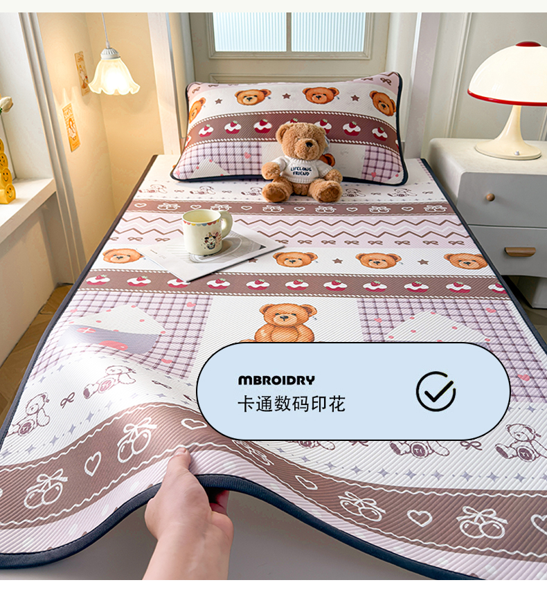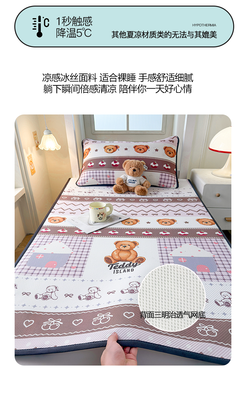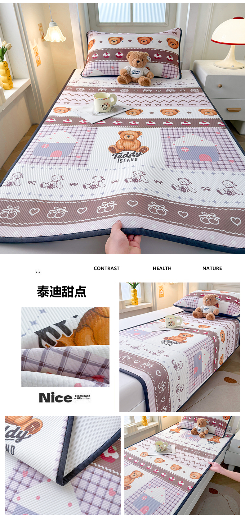 当前位置: 91家纺网 > 商品网购 > 床上用品 > 凉席 > 凉席套件 > 慕木家纺 2026新款A类三明治复合冰丝席泰迪爱兰系列学生款(正版授权)(提供买家秀) 泰迪甜点
