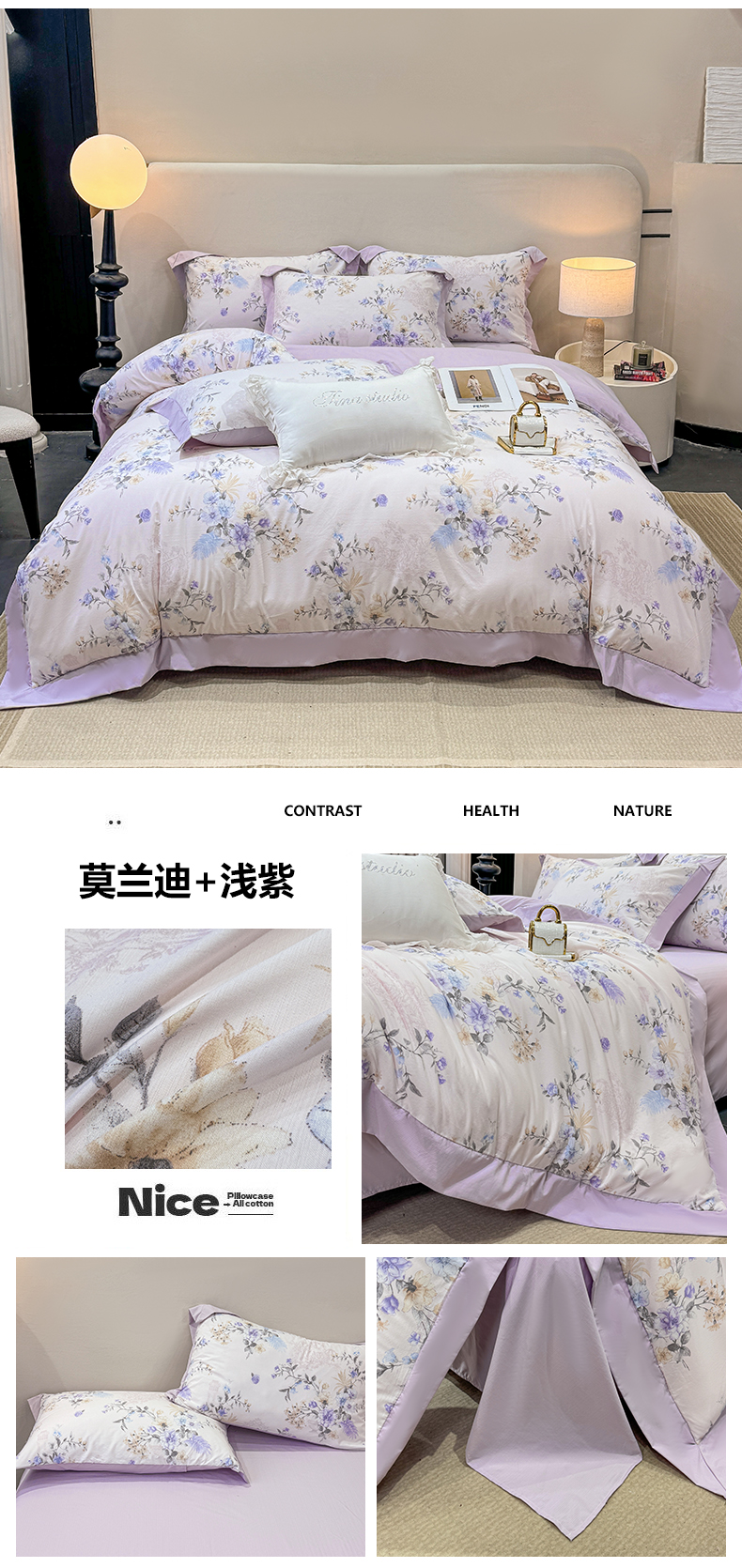 当前位置: 91家纺网 > 商品网购 > 床品套件 > 四件套 > 其它四件套 > 慕木家纺 2026新款A类印花拼角工艺慕斯棉四件套系列(抽空压缩可供跨境)提供买家秀 蓝漪+蓝