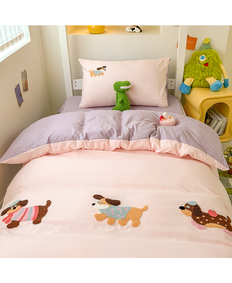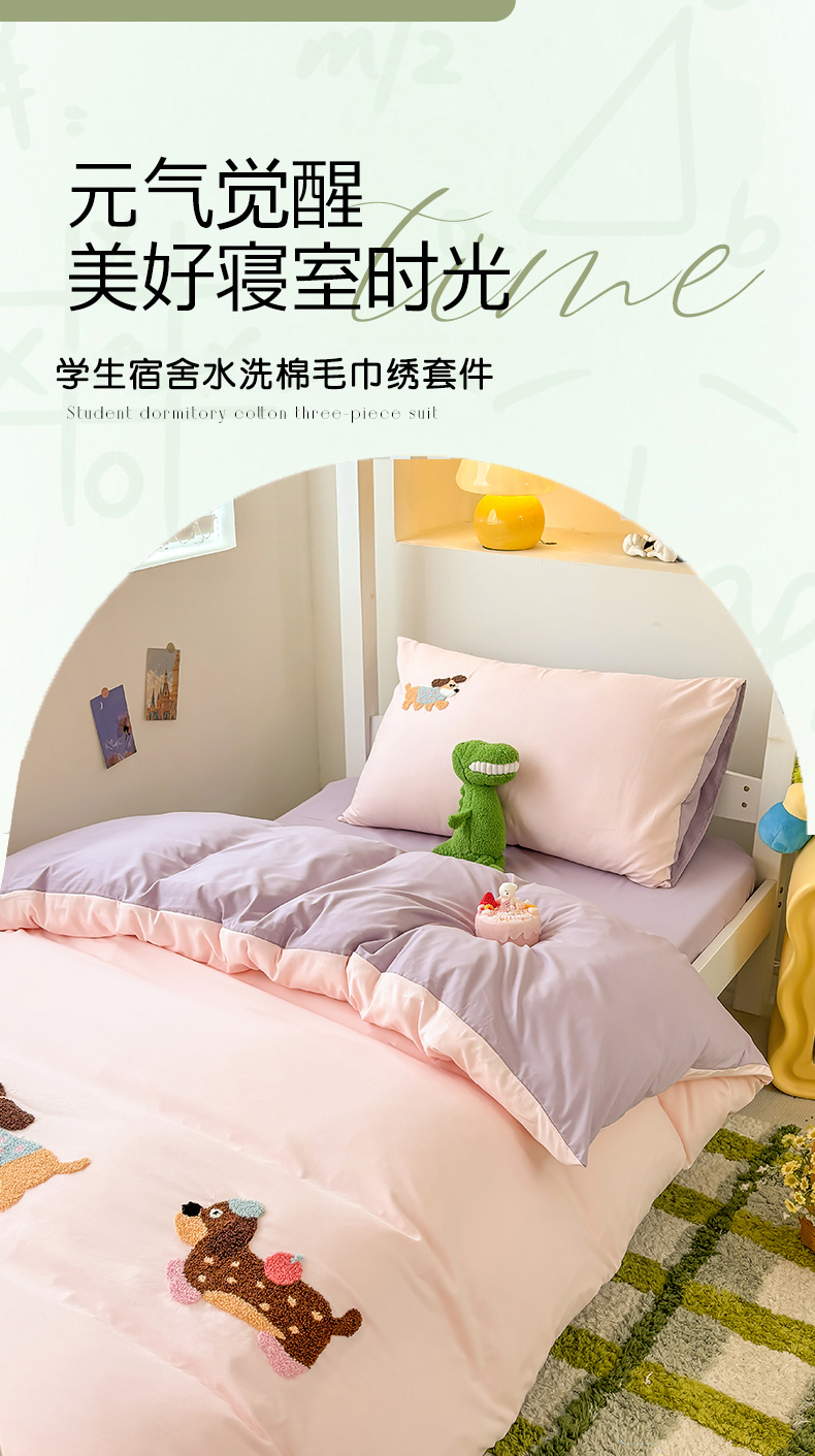 当前位置: 91家纺网 > 商品网购 > 床品套件 > 三件套 > 欧妮家纺 2025新款学生床三件套学校宿舍单人寝室上下铺床上用品-提供买家秀 可爱狗狗-浅粉紫
