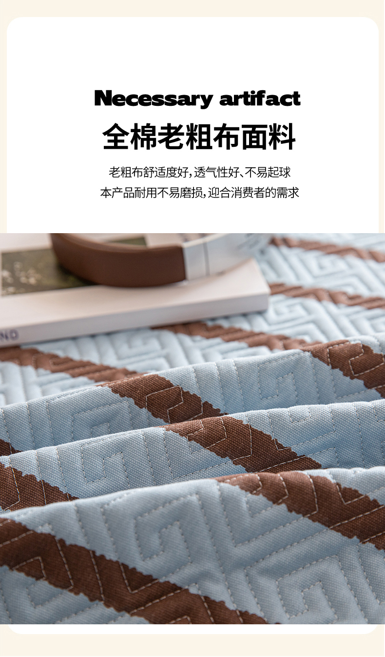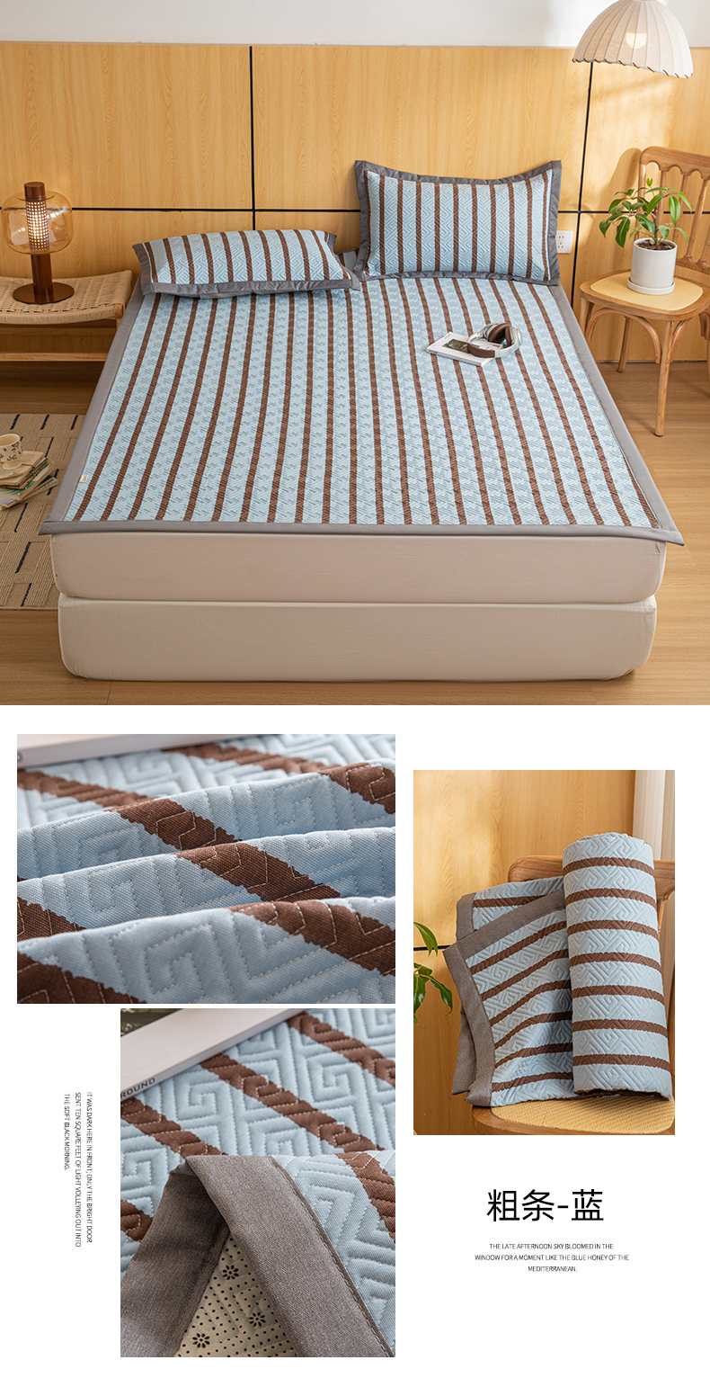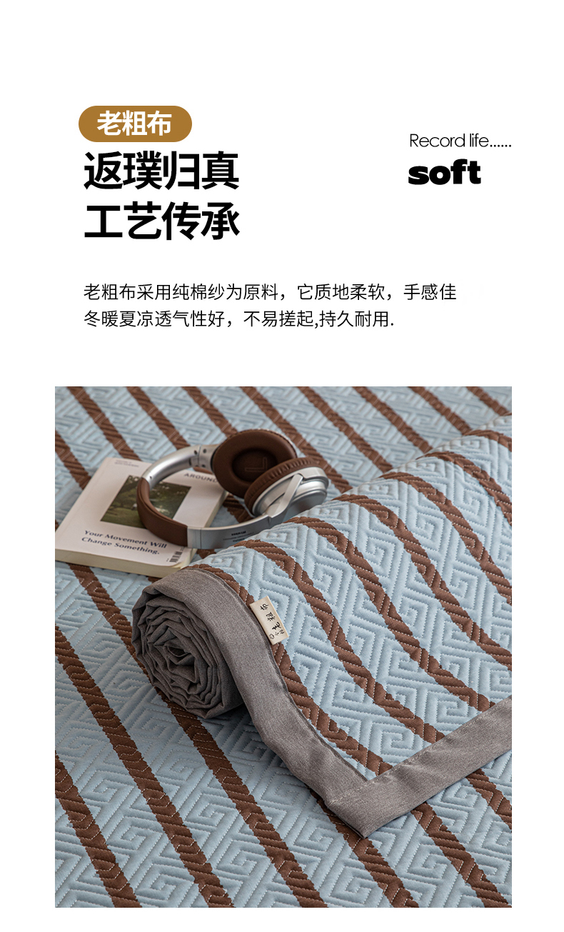 商品名称:女子家纺 2026新款宽边全棉纯棉老粗布绗缝夏季凉席席子 粗条-蓝