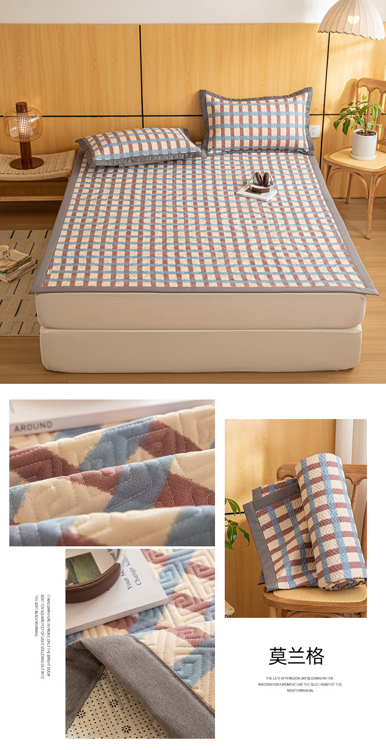 (总)女子家纺 2026新款碳光冰丝席子三件套加厚三明治冰丝软席席子凉席-平铺席,千鸟格-绑带款-海星蓝,千鸟格-绑带款-千禧粉,千鸟格-绑带款-松石绿,千鸟格-绑带款-香槟金,千鸟格-绑带款-银帆灰,组合图(仅供展示不可下单)