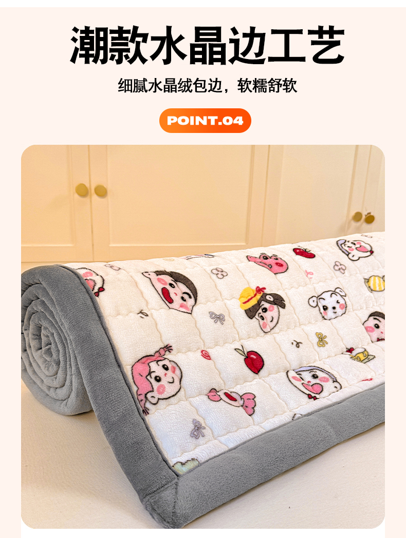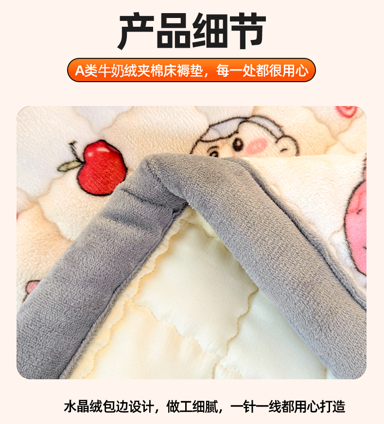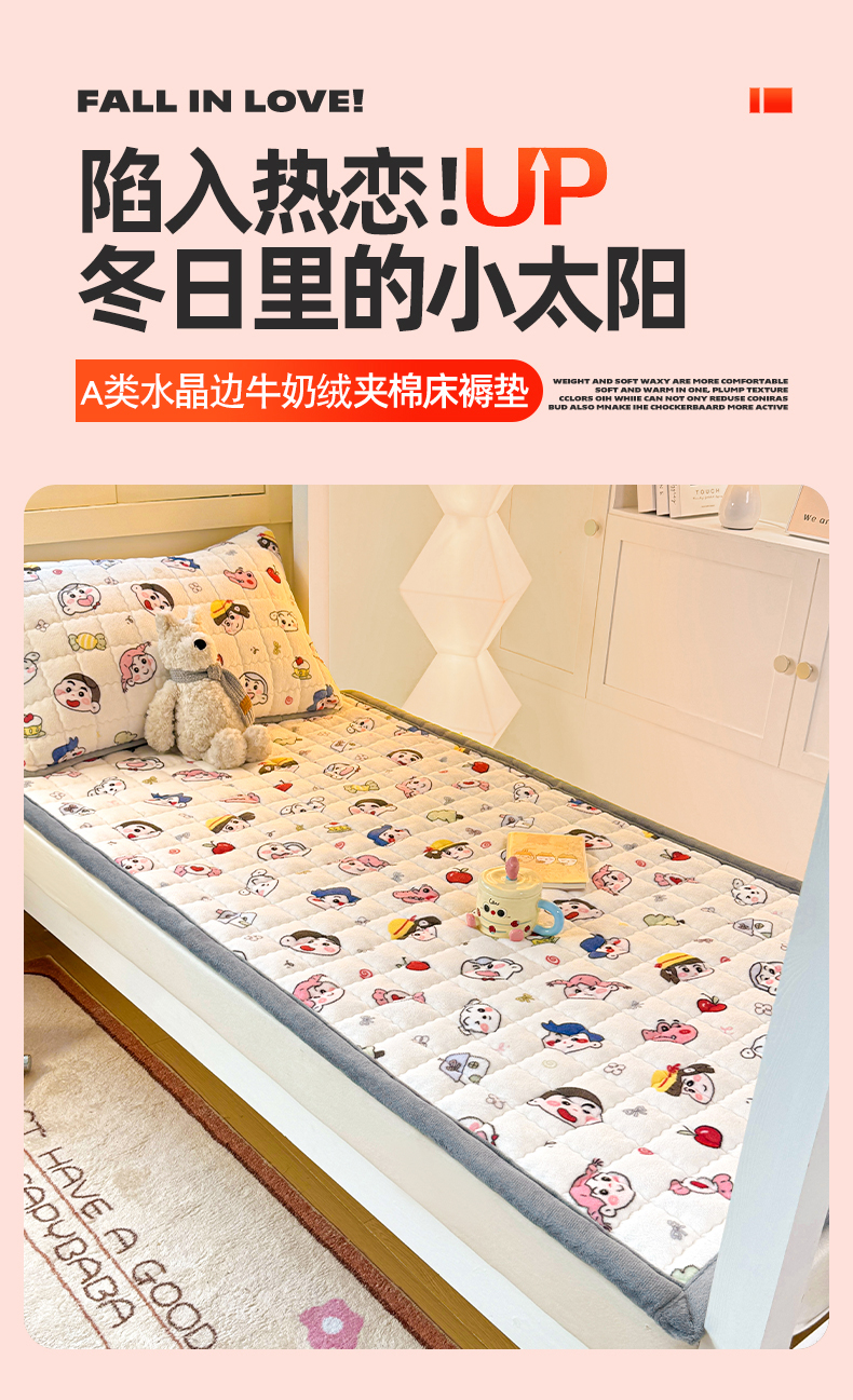 商品名称:(总)欧妮家纺 2025新款A类水晶边牛奶绒夹棉床褥垫床垫褥子(提供买家秀)