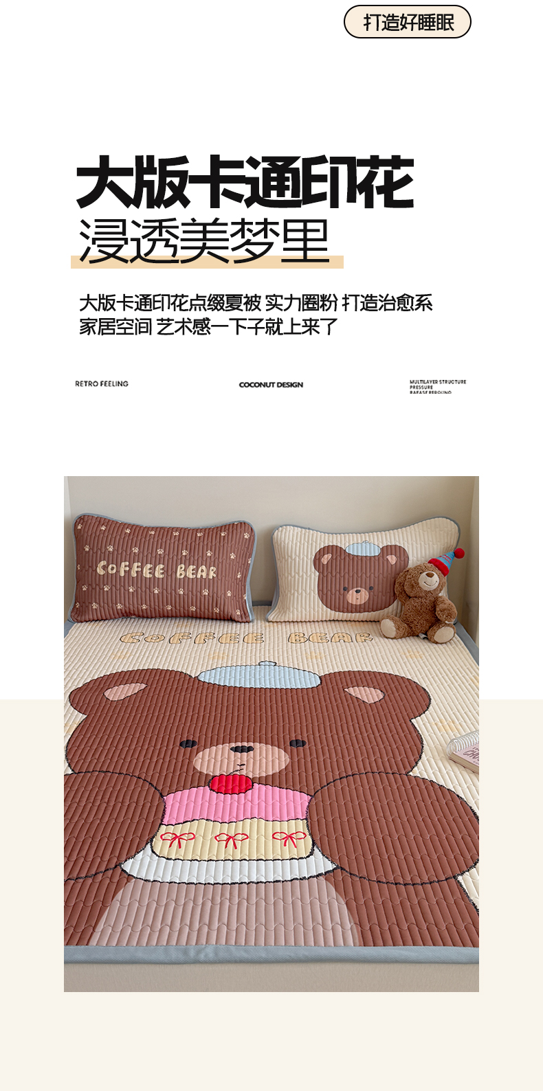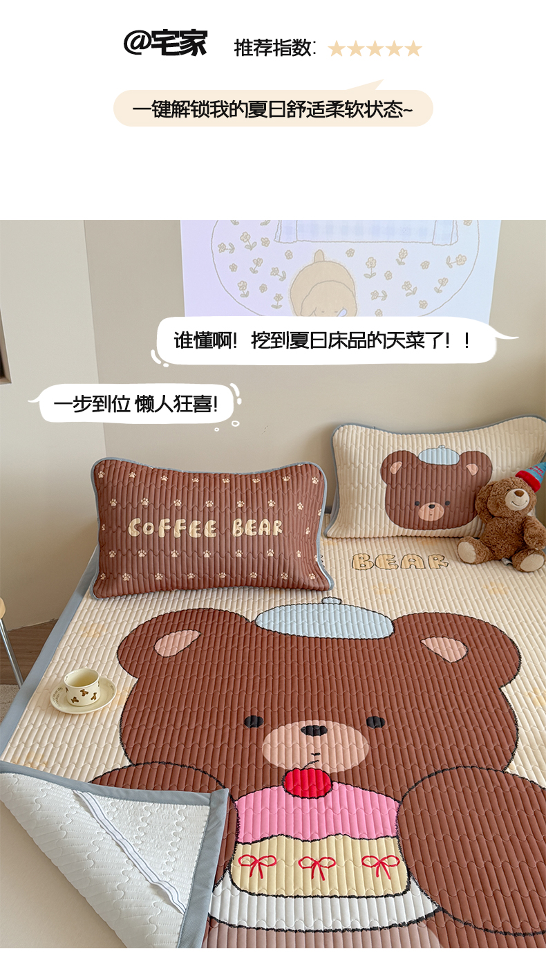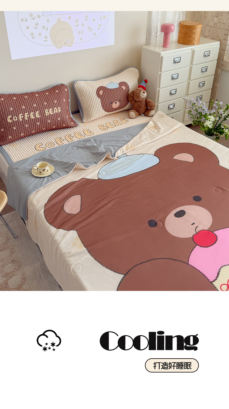 • 91家纺网 家纺一手货源 找家纺 贝扬思家纺 2026新款数码大版凉感丝夏被凉席系列 樱桃蛋糕熊