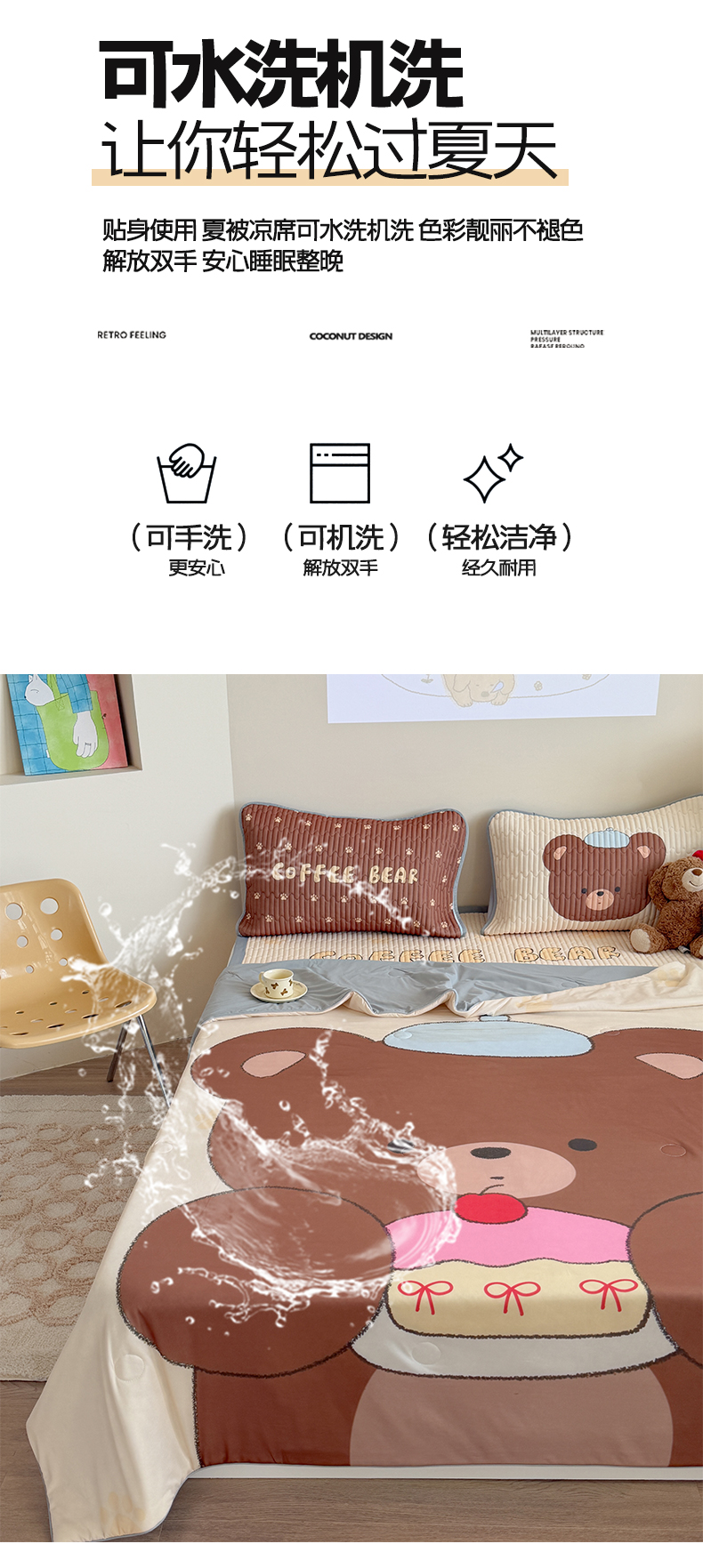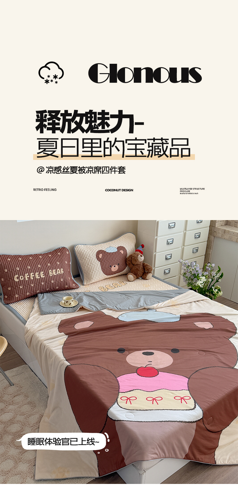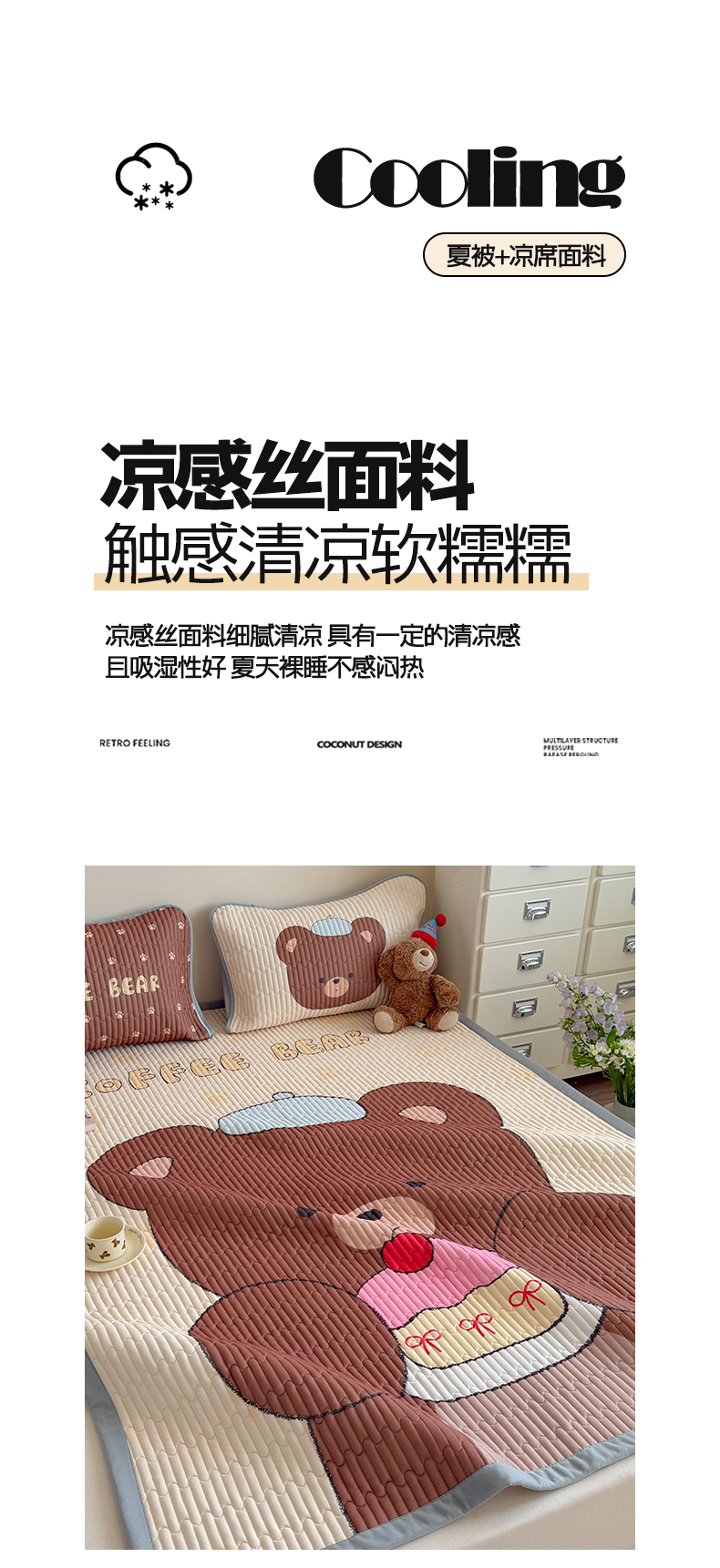 • 91家纺网 家纺一手货源 找家纺 贝扬思家纺 2026新款数码大版凉感丝夏被凉席系列 樱桃蛋糕熊