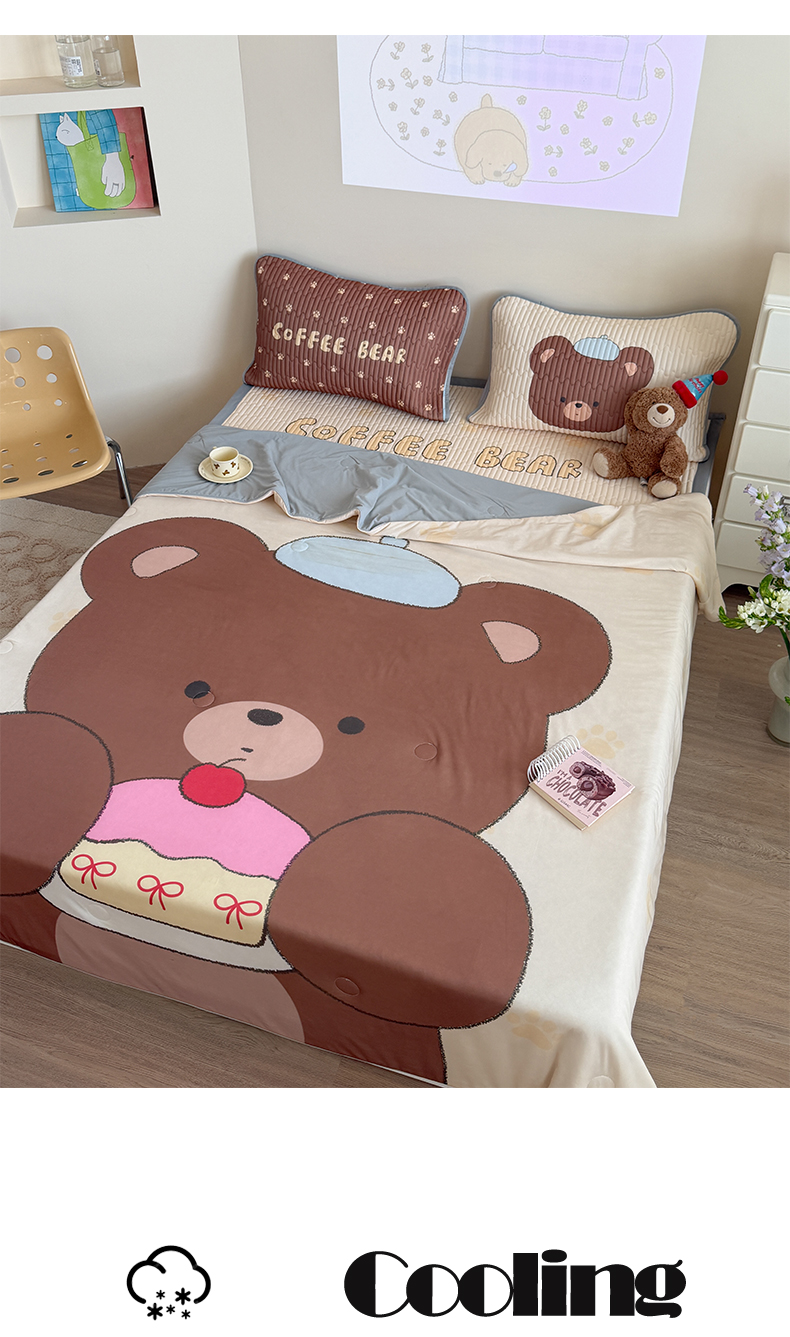 贝扬思家纺 2026新款数码大版凉感丝夏被凉席系列 樱桃蛋糕熊