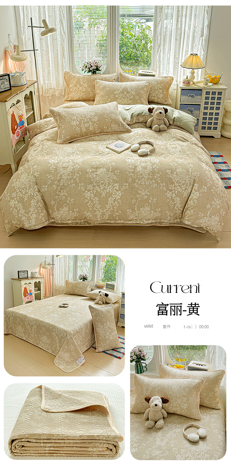 当前位置: 91家纺网 > 商品网购 > 床品套件 > 四件套 > 全棉普通四件套 > 文黛家居 2026新款全棉双层纱床盖四件套 富丽-黄