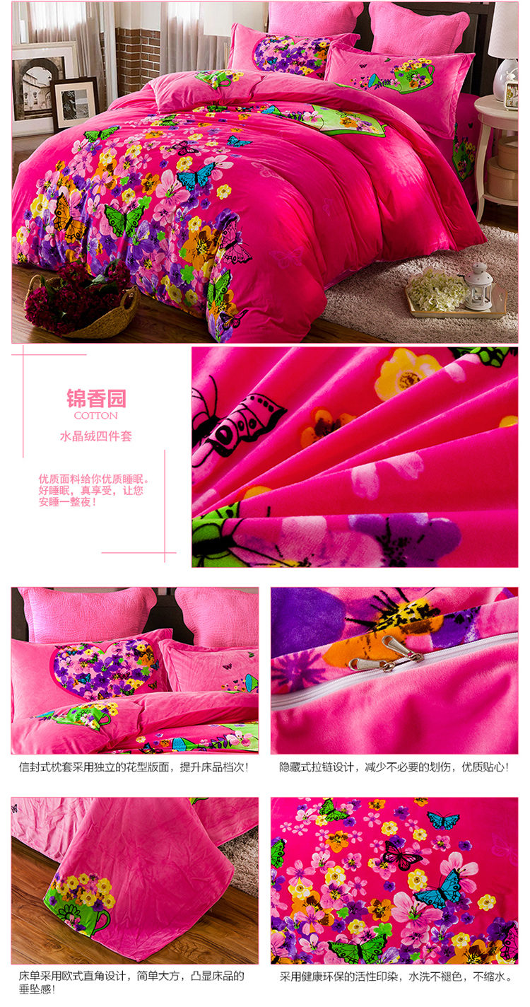 漫调家纺 温暖舒适水晶绒四件套锦香园