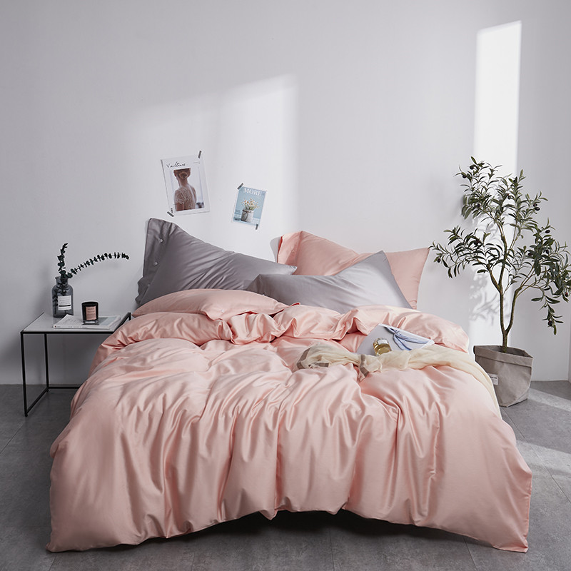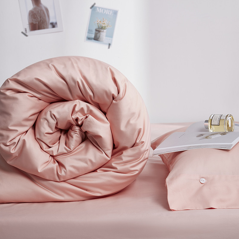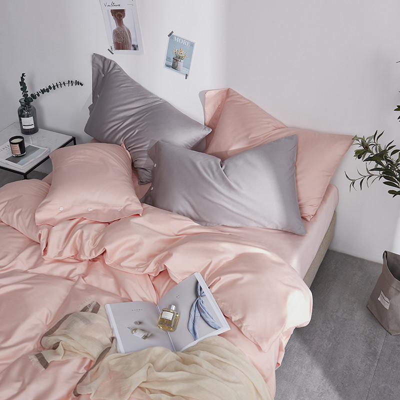 优然居家纺 60支长绒棉纯色四件套萝莉粉