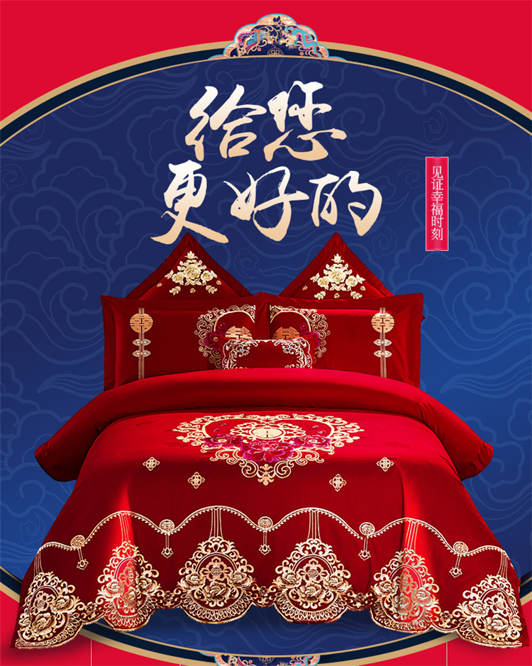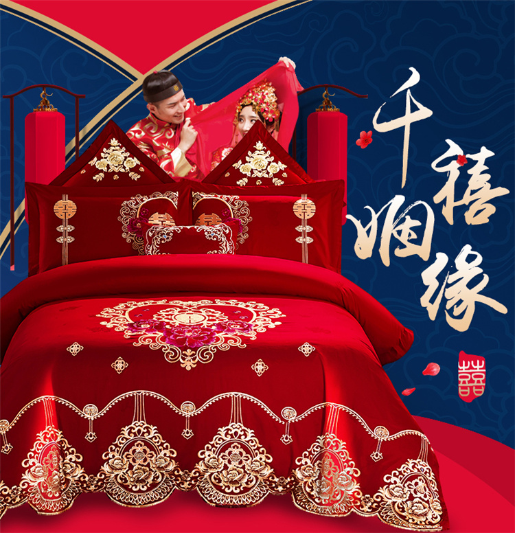 (总)千禧家纺 2024新款双面长绒棉磨毛加厚保暖绣花婚庆套件,大喜大吉,鸿运贺禧,欢乐喜事,欢喜,美满爱情,喜上眉梢,喜约,相伴一生,挚爱