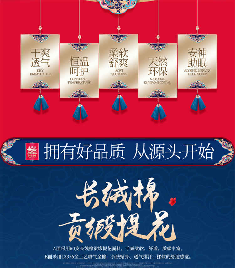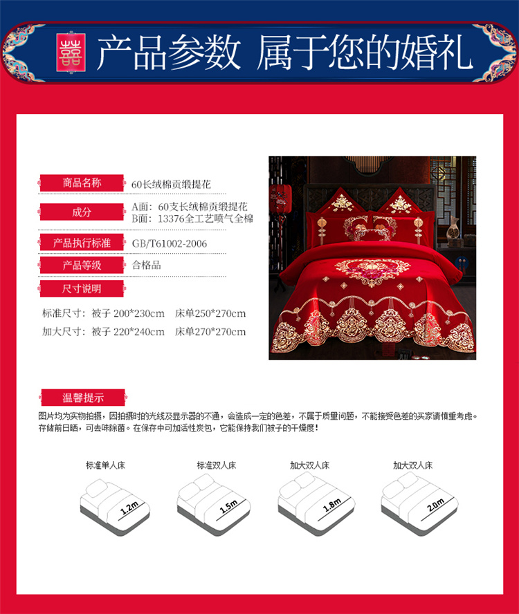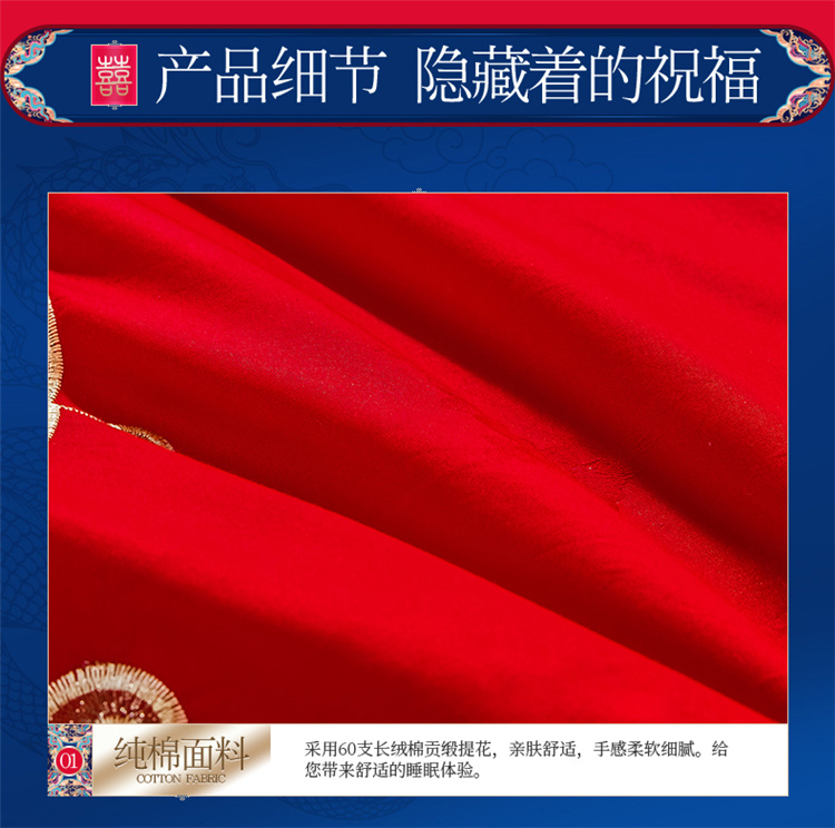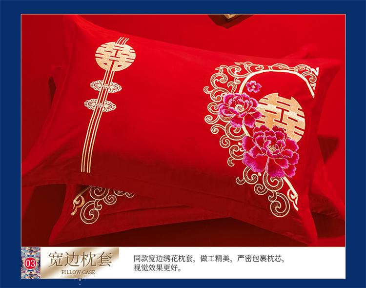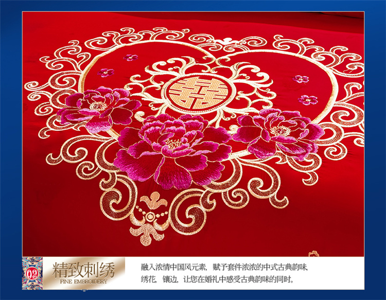 商品名称:千禧婚庆专供 长绒棉贡缎提花绣花婚庆套件 千禧姻缘