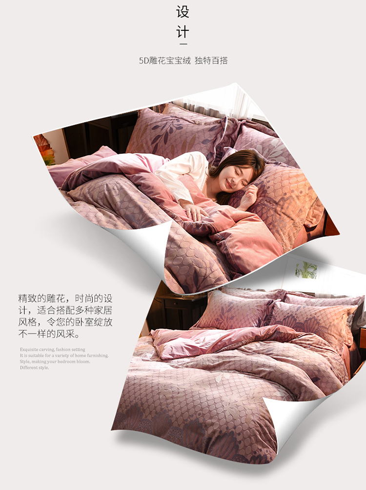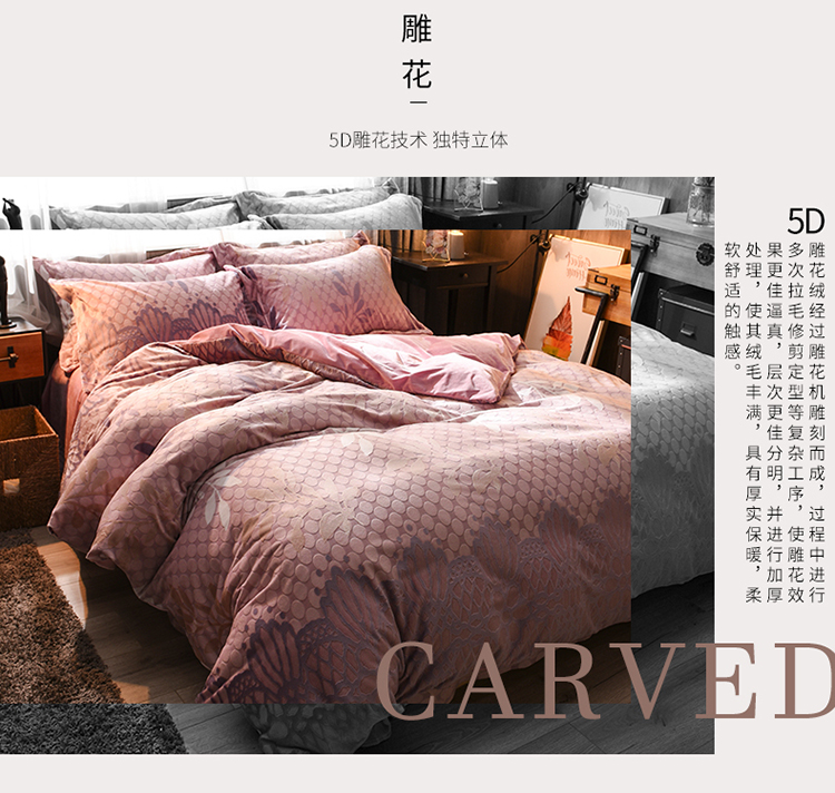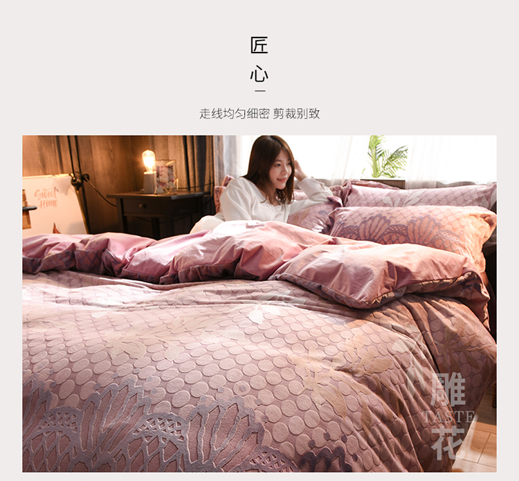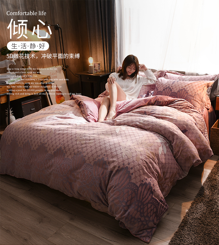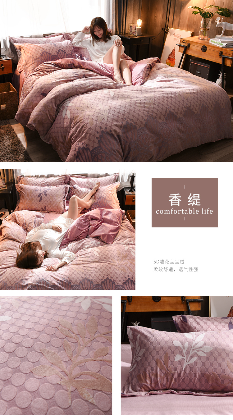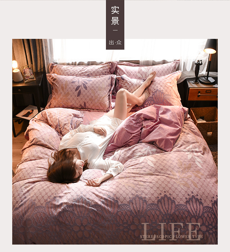 芃成家纺 5D雕花绒四件套 香缇随机花边