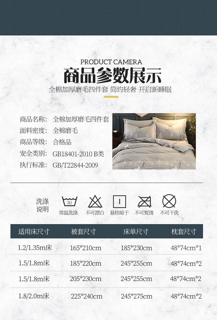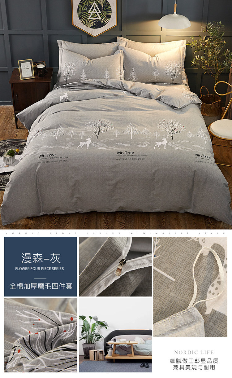 商品名称:雲归梦 2019新款多规格全棉加厚生态磨毛四件套 漫森-灰