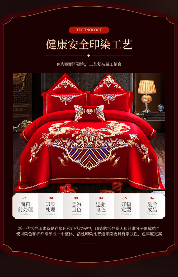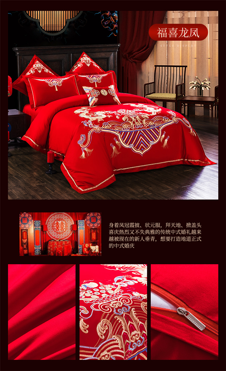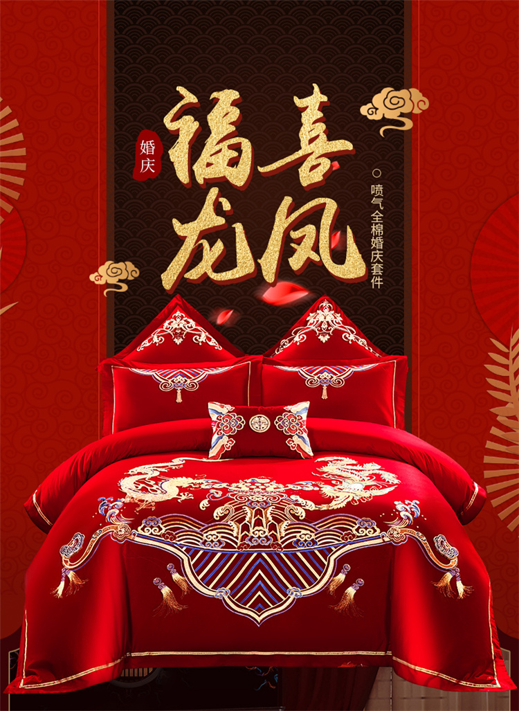 千禧婚庆专供 2019喷气全棉婚庆四件套多件套 福喜龙凤