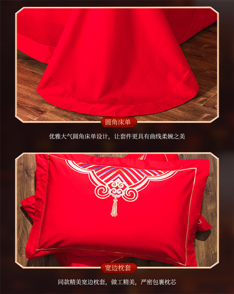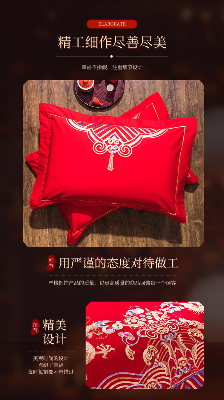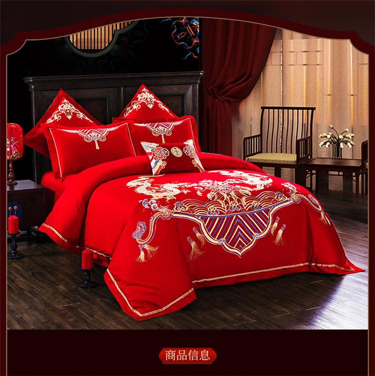 商品名称:千禧婚庆专供 2019喷气全棉婚庆四件套多件套 福喜龙凤