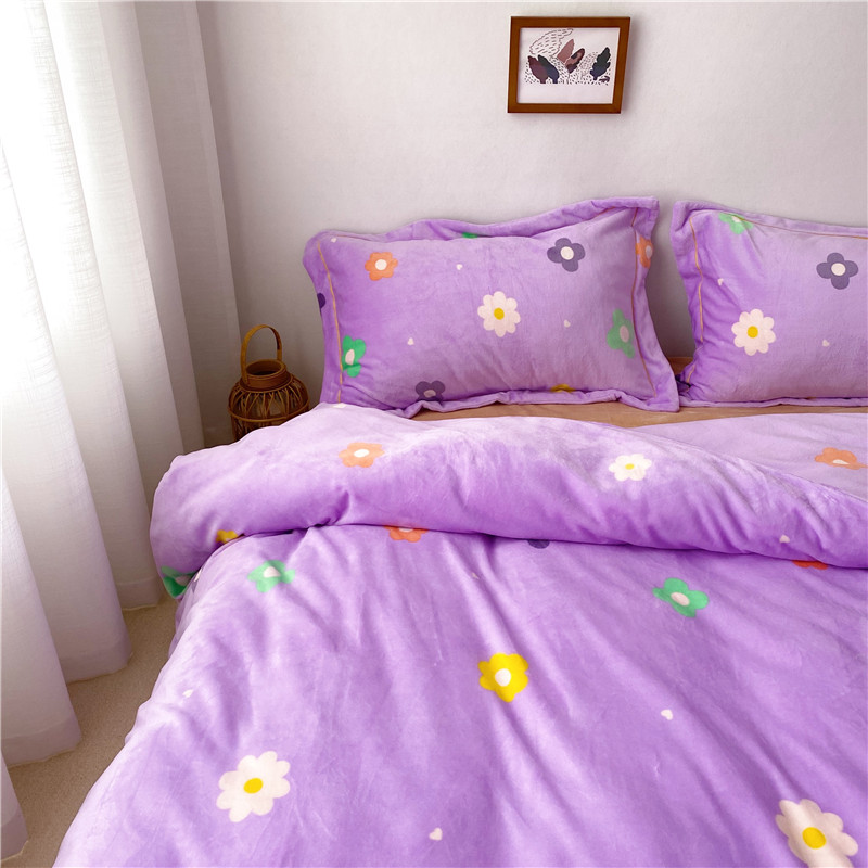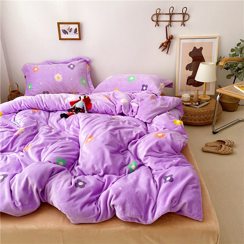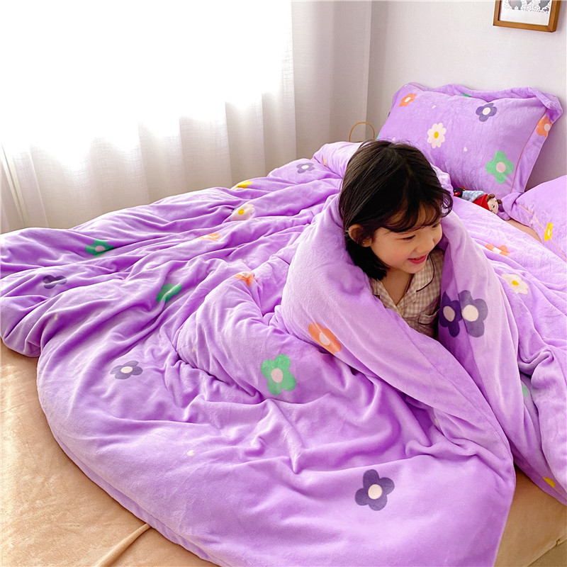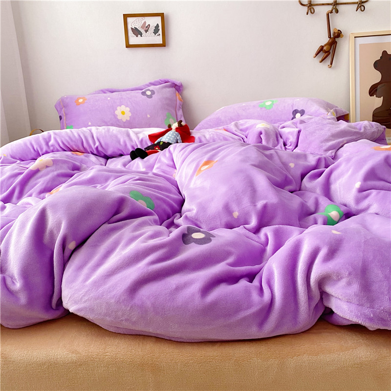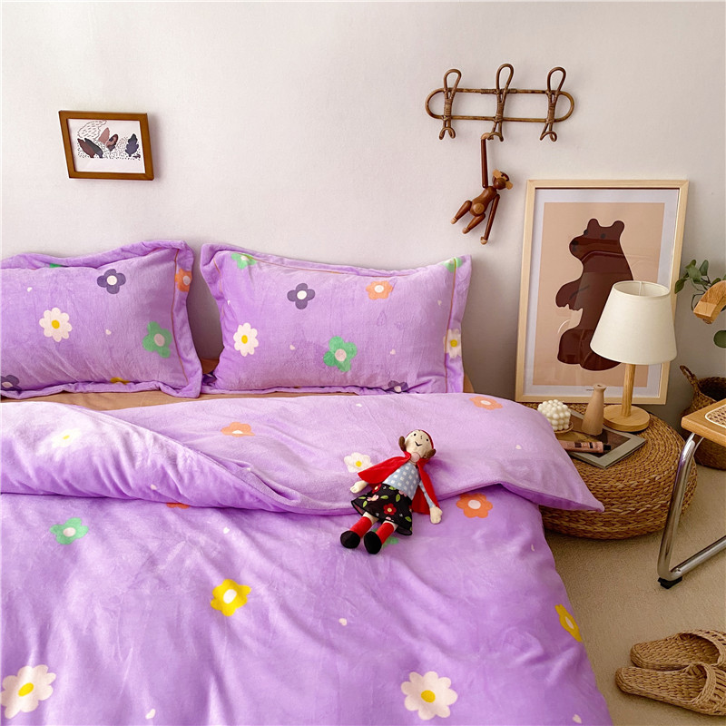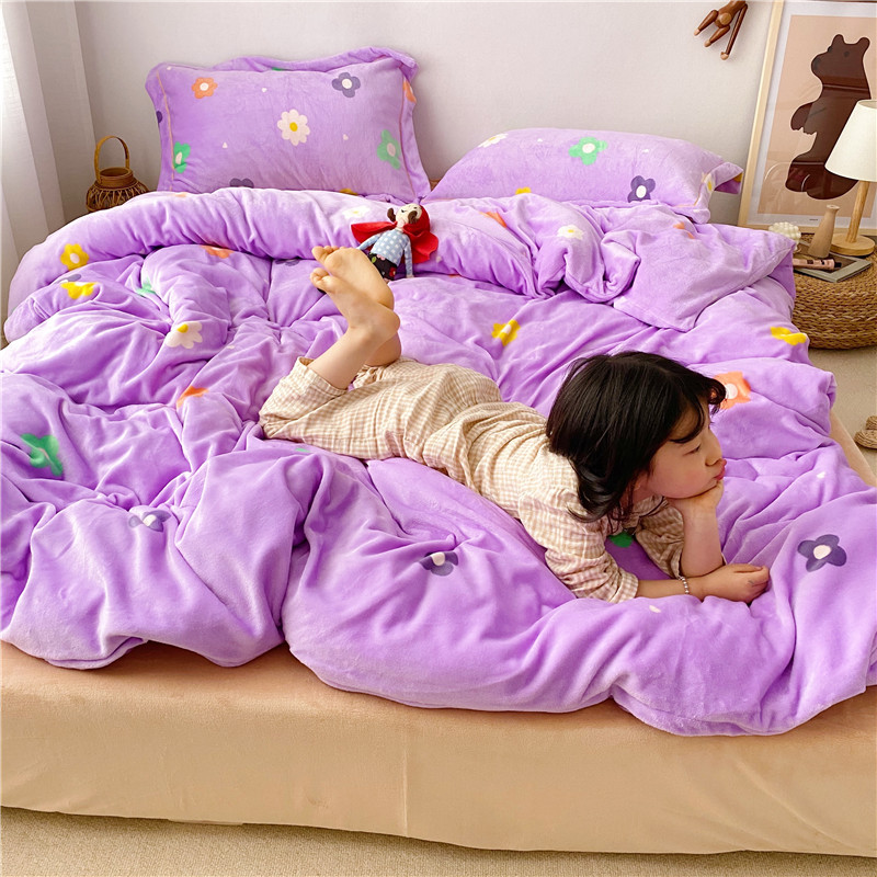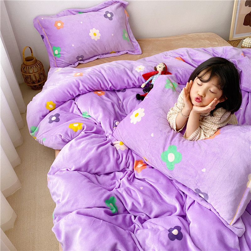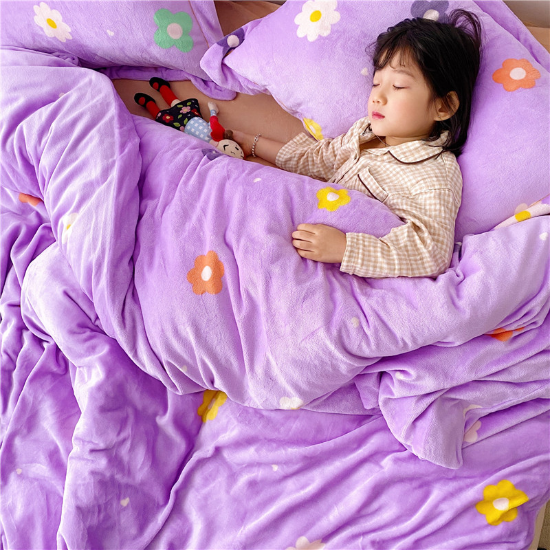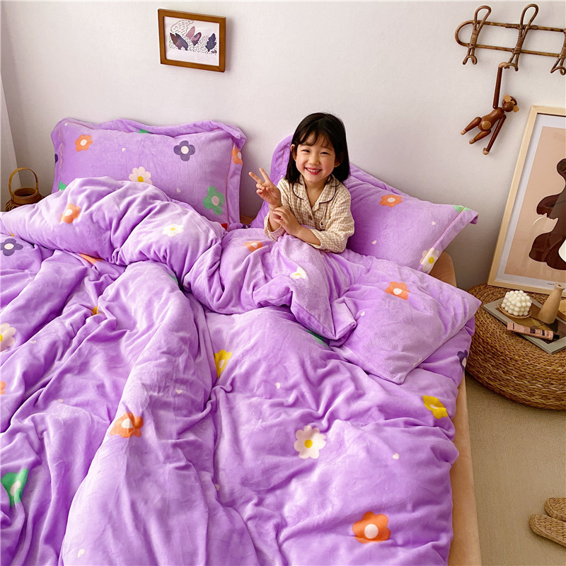 商品名称:时年 2019牛奶绒印花保暖四件套童模图 小花花紫