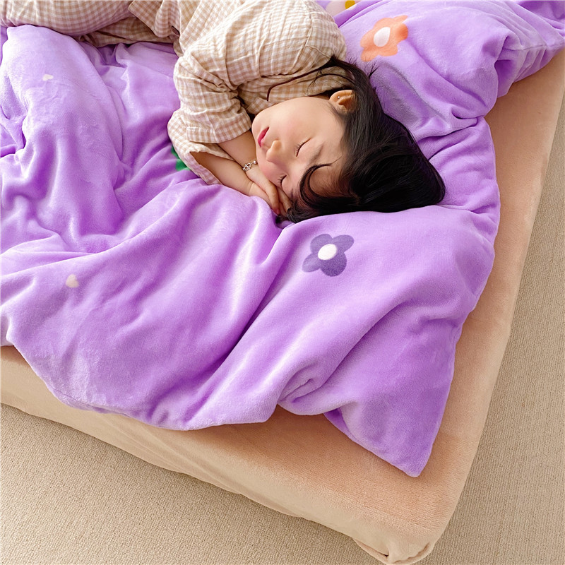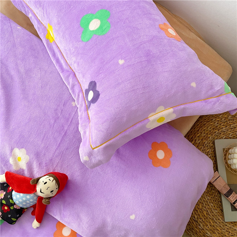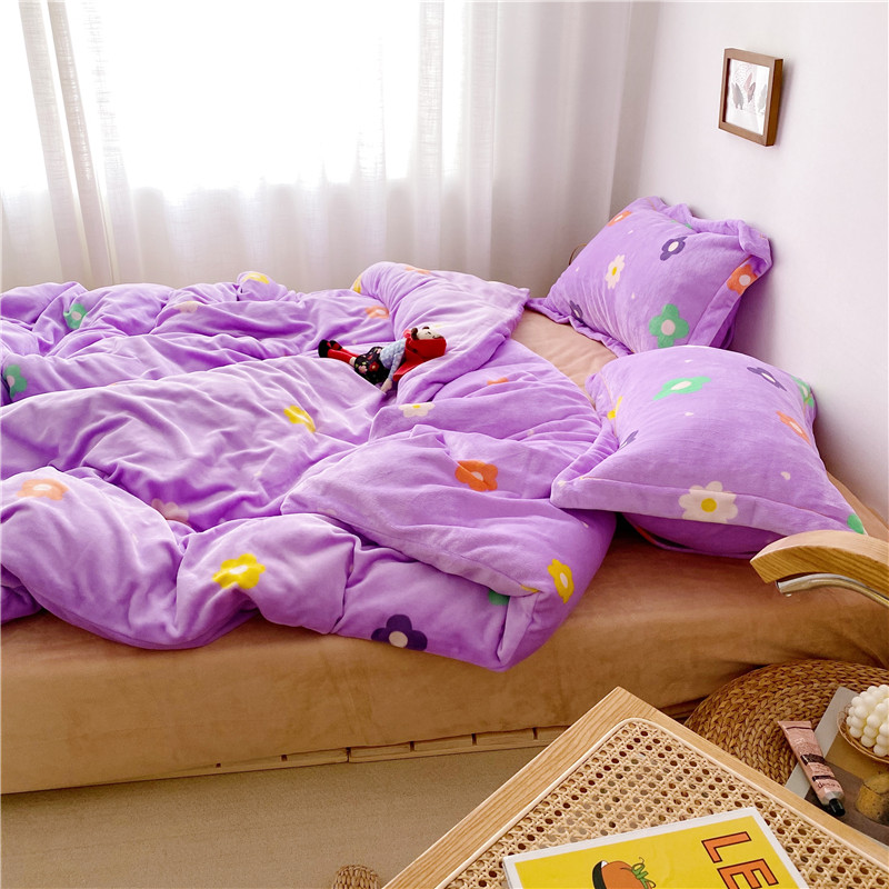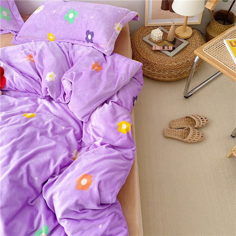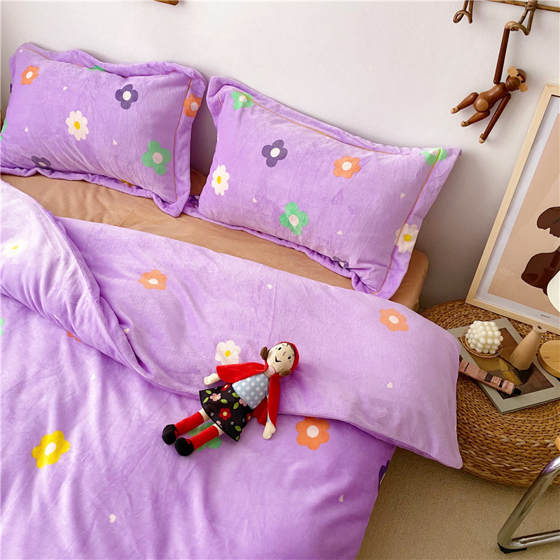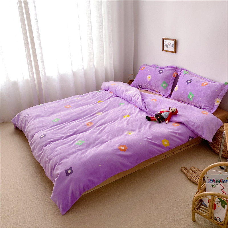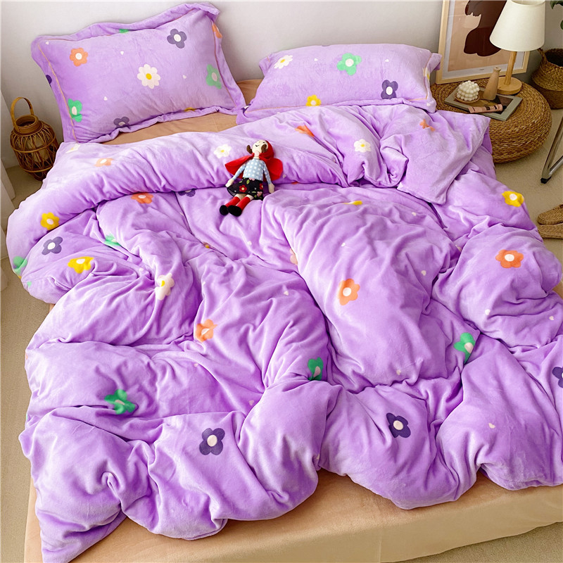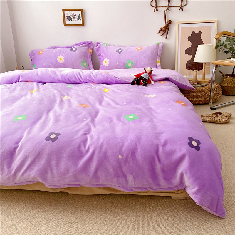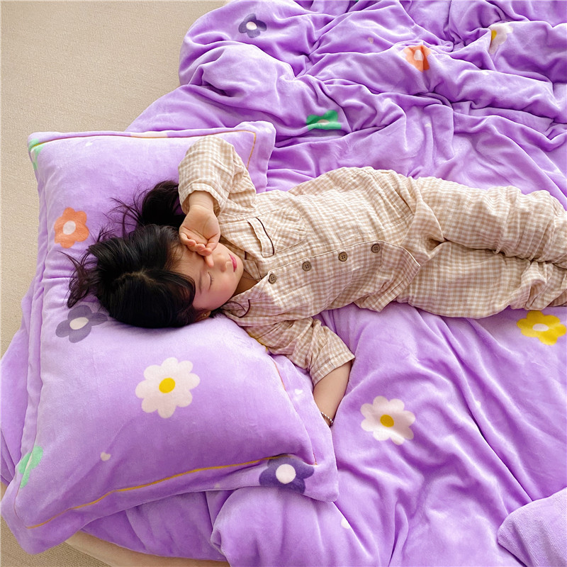 商品名称:时年 2019牛奶绒印花保暖四件套童模图 小花花紫