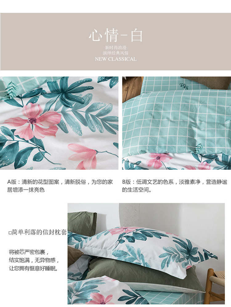 窝米 2020春夏新品花卉风系列四件套 心情-白