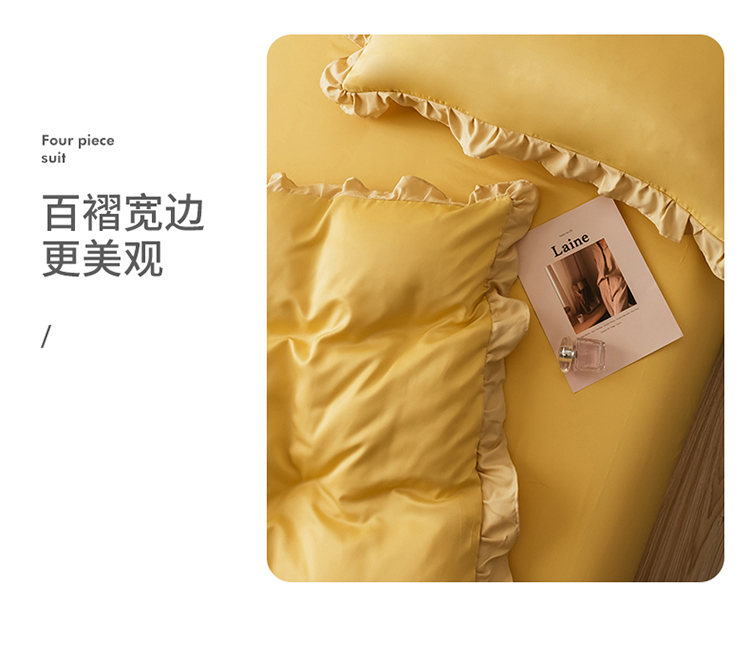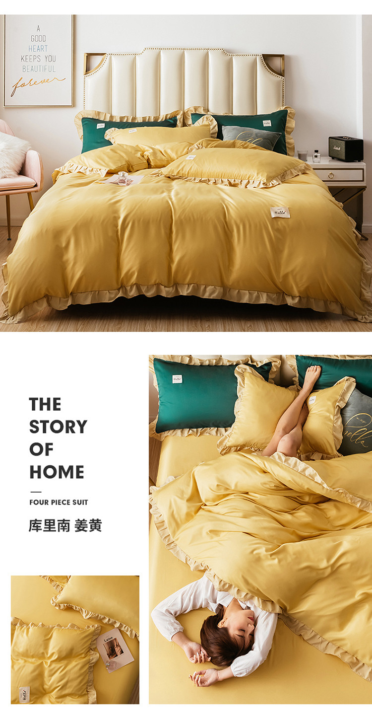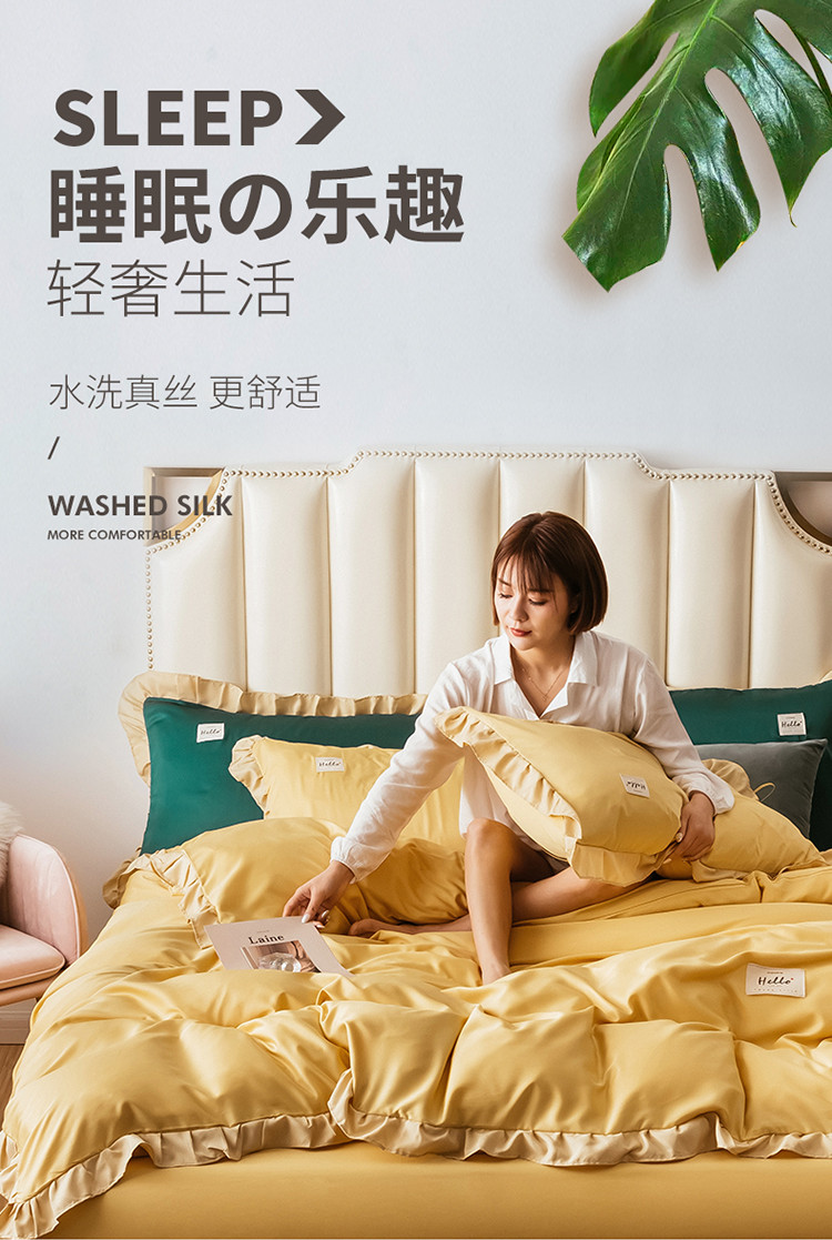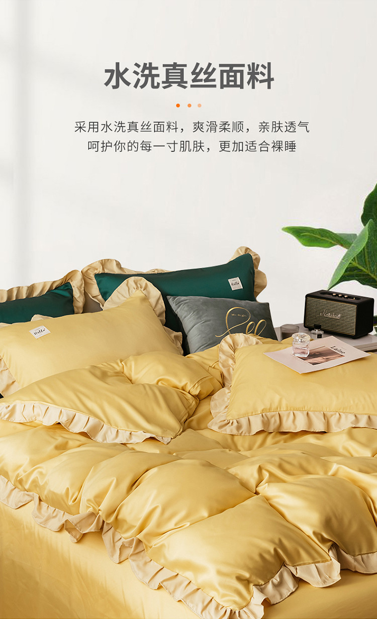 商品名称:芃成 2020新款水洗真丝库里南花边四件套 库里南-姜黄