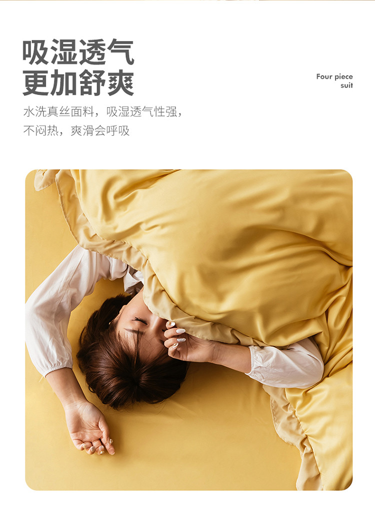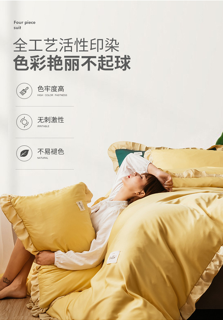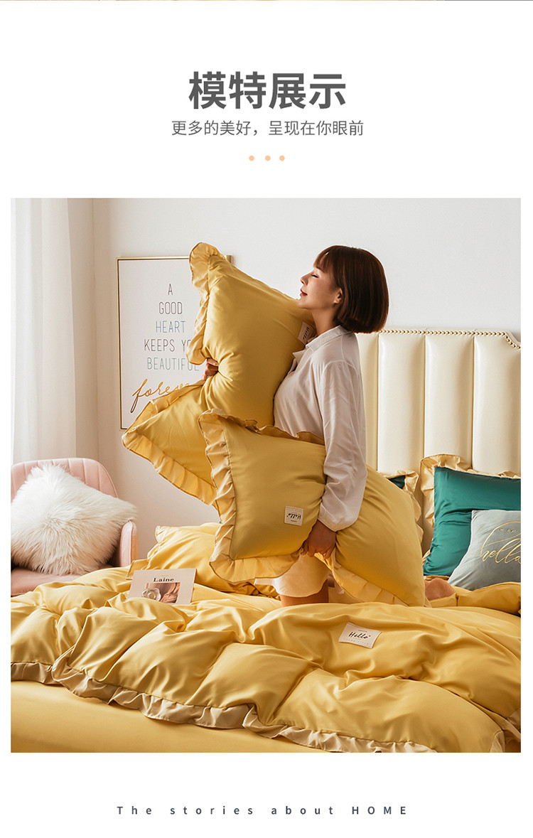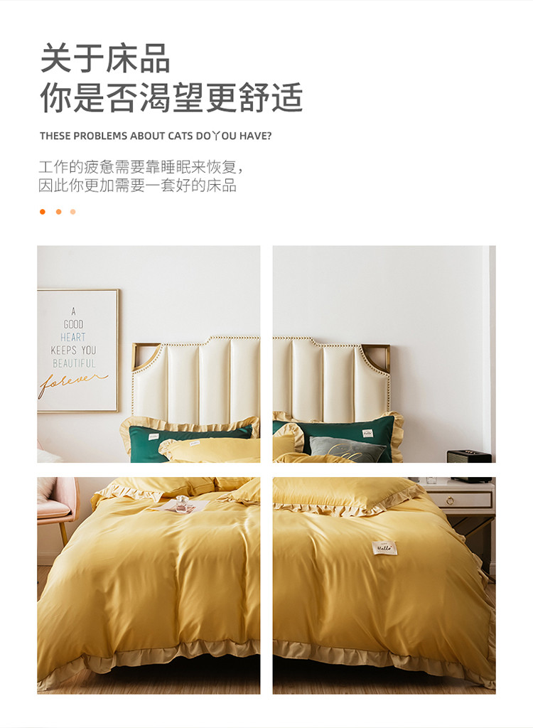 商品名称:芃成 2020新款水洗真丝库里南花边四件套 库里南-姜黄