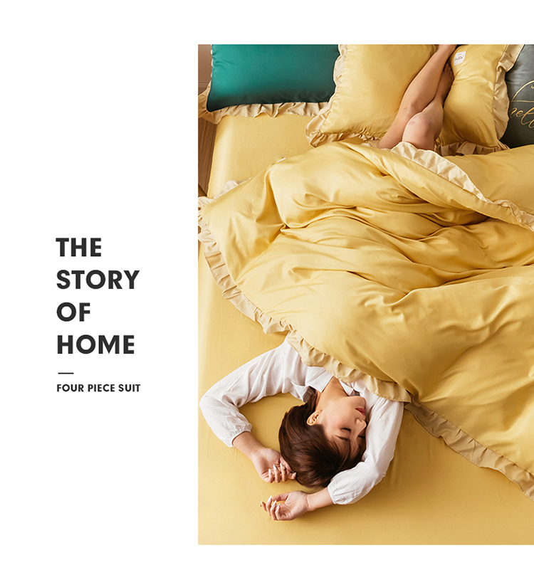 芃成 2020新款水洗真丝库里南花边四件套 库里南-姜黄