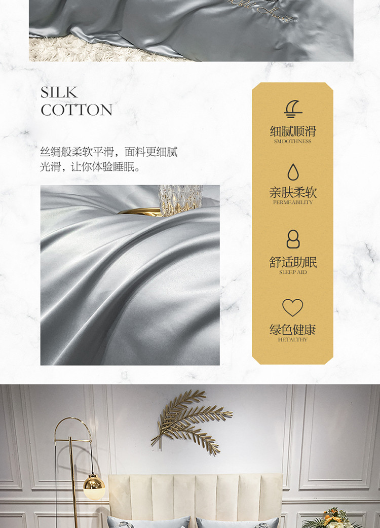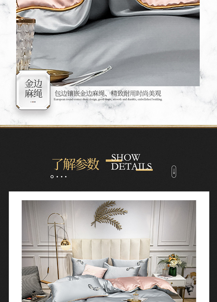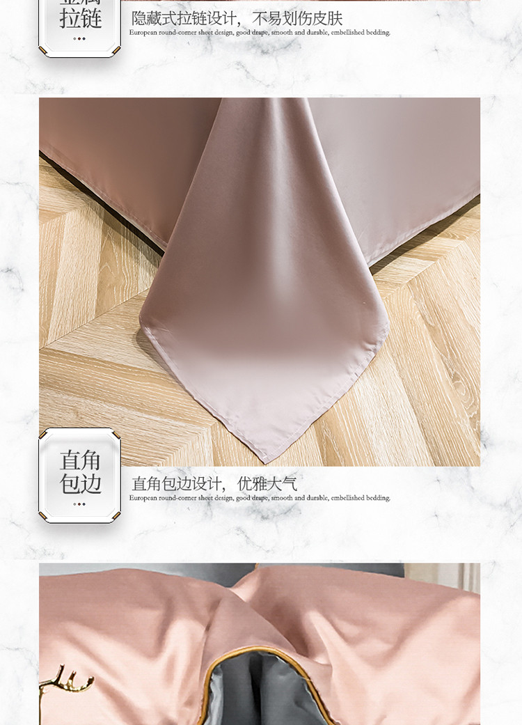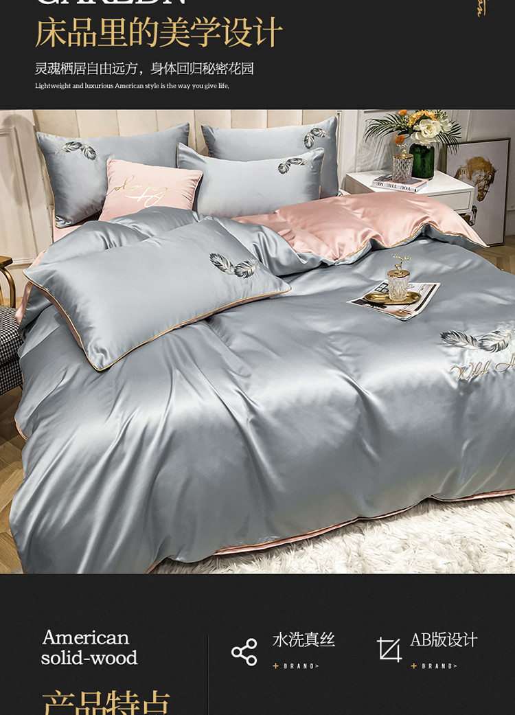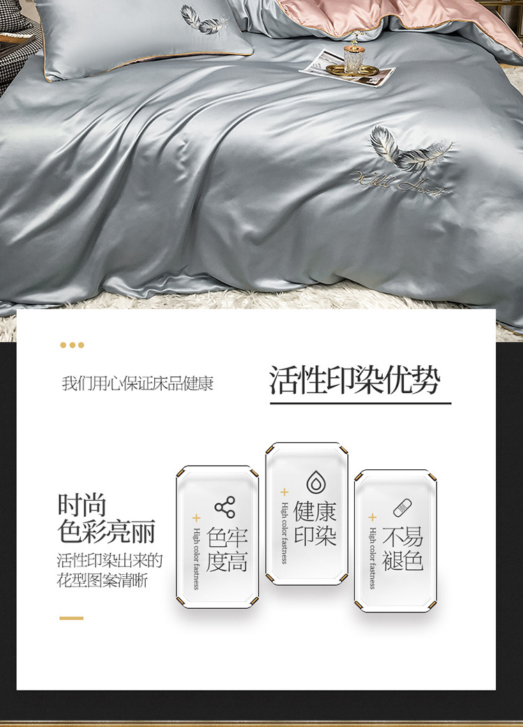 商品名称:琪格格 2022新款水洗真丝刺绣四件套 A都市羽毛银灰