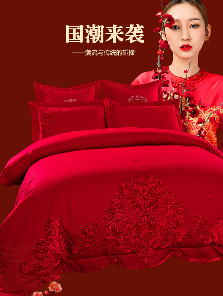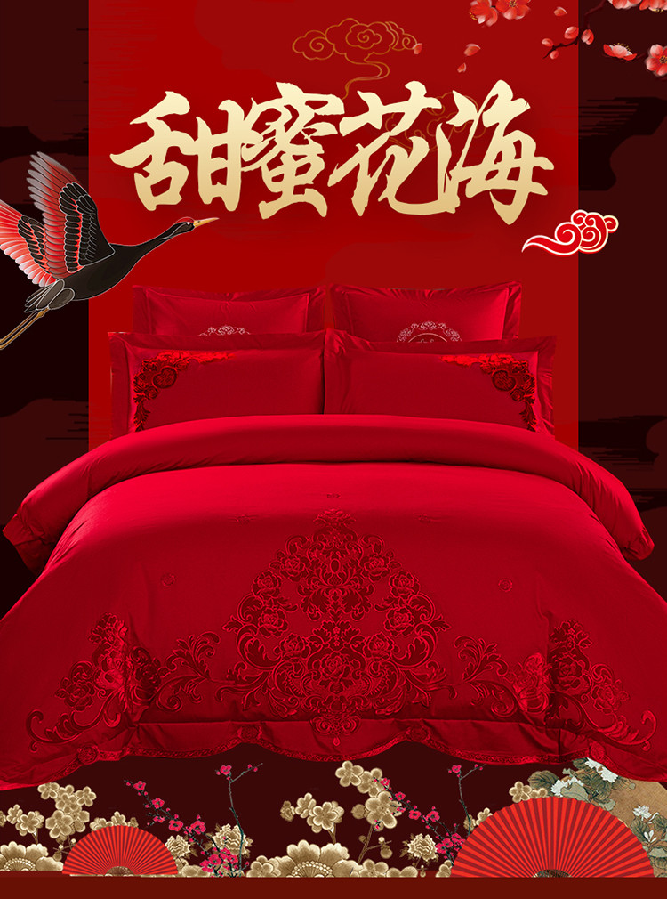 皇潮婚庆馆2021新款全棉贴绒绣婚庆四件套多件套甜蜜花海