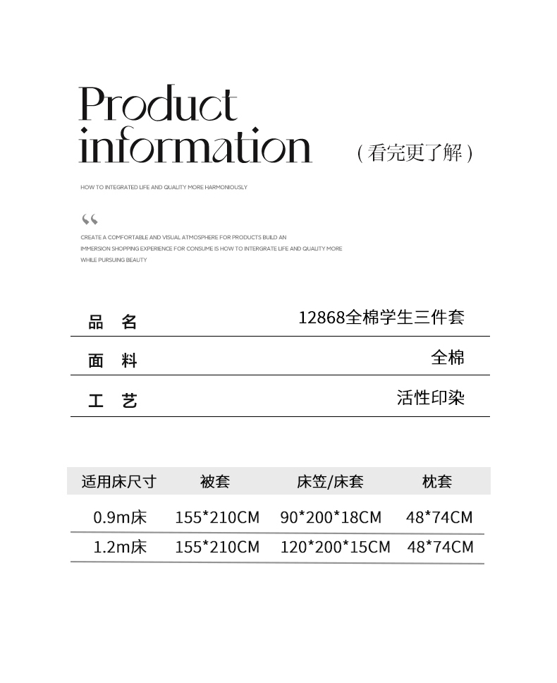 三件套床笠尺寸一(被套155*205床笠90*200枕套48*74)