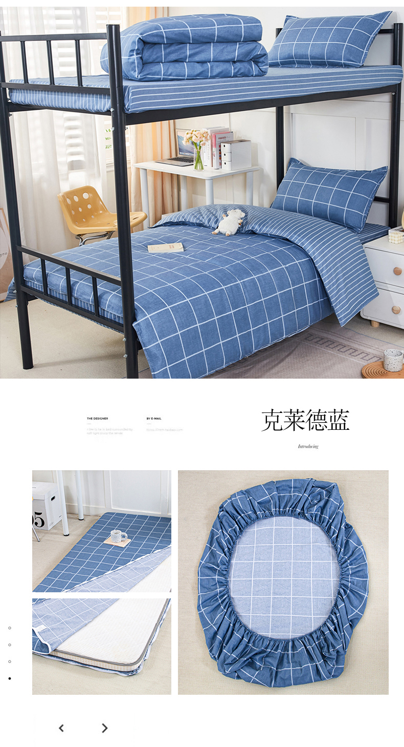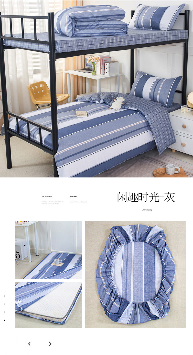 (总)锦润家纺 2025新款13372全棉纯棉学生宿舍上下铺三件套和六件套,军绿色,天空蓝,银灰色