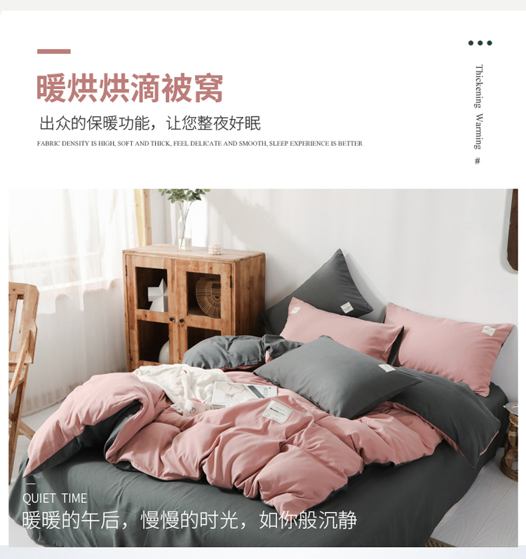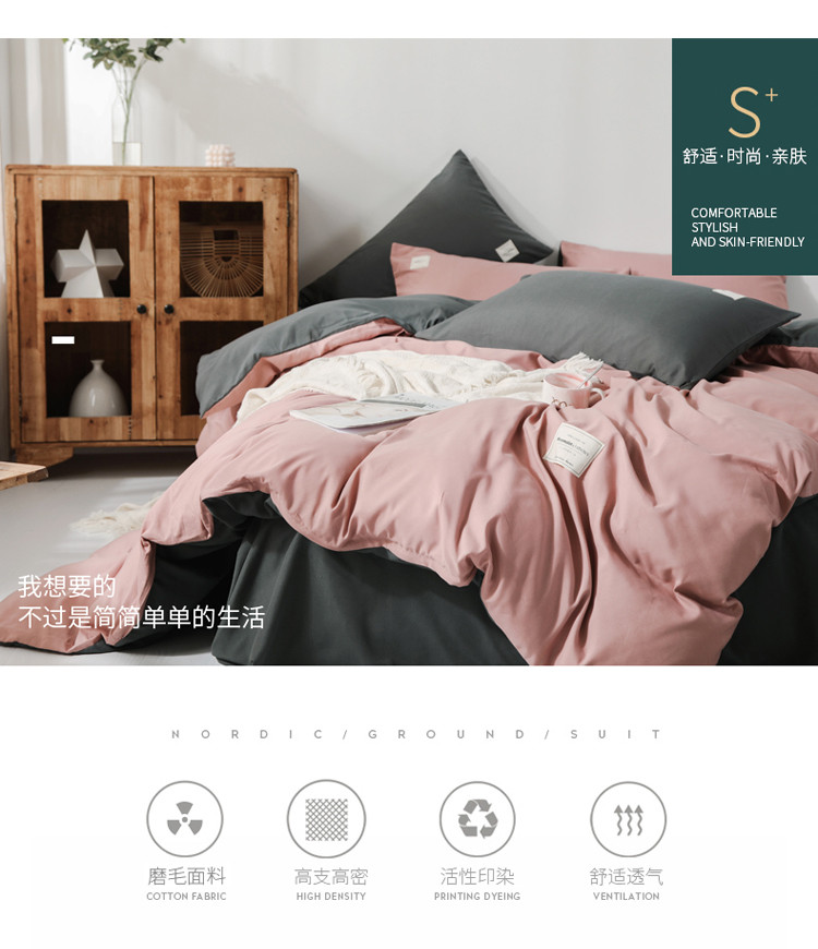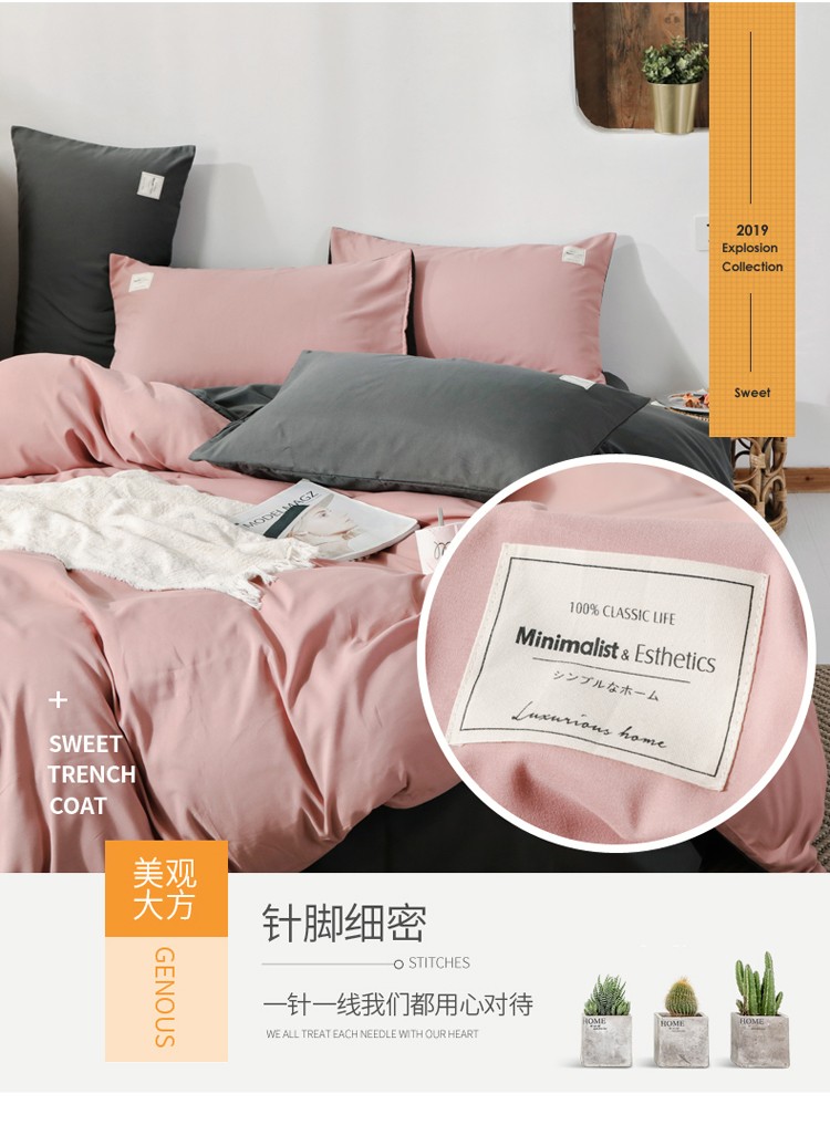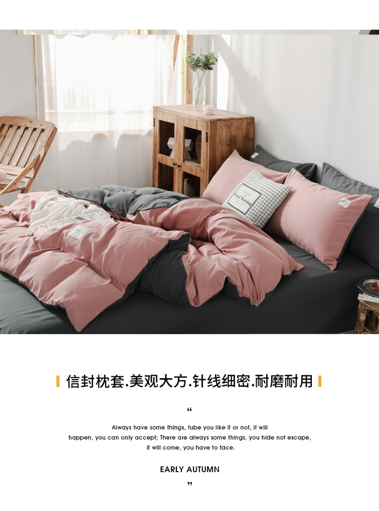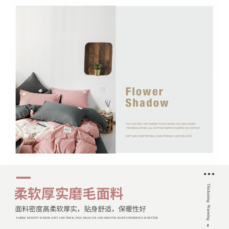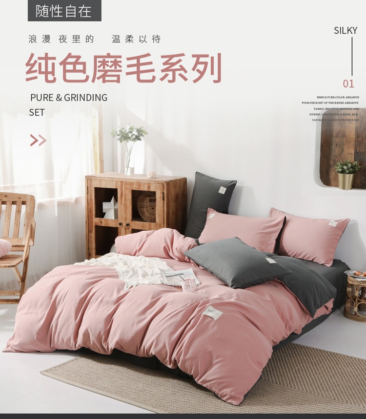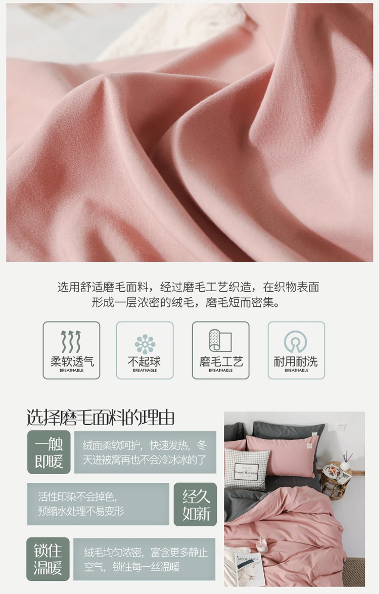 商品名称:米粒 2020新款纯色磨毛四件套 藕粉+深灰