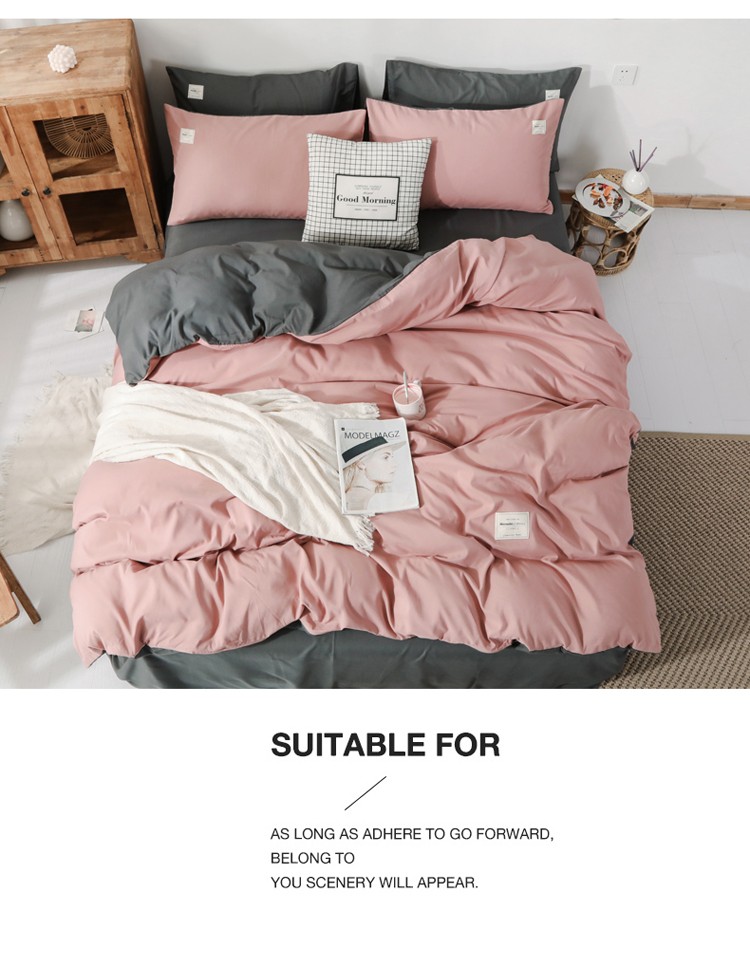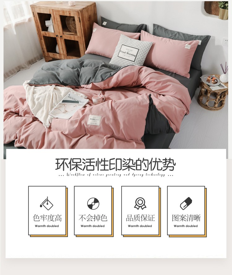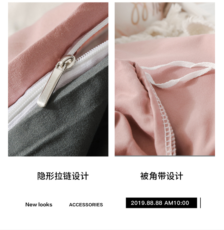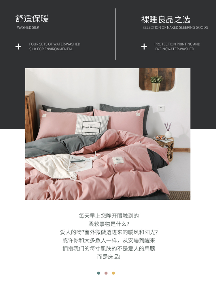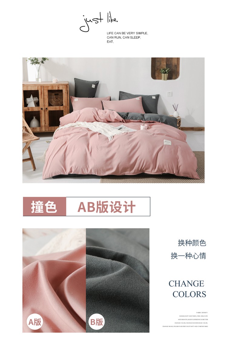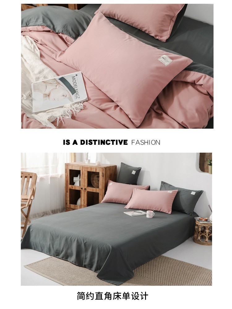 商品名称:米粒 2020新款纯色磨毛四件套 藕粉+深灰