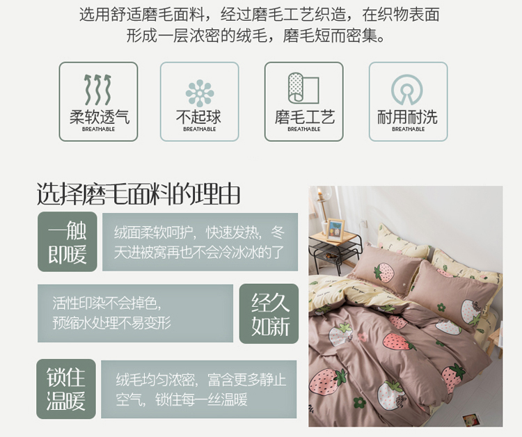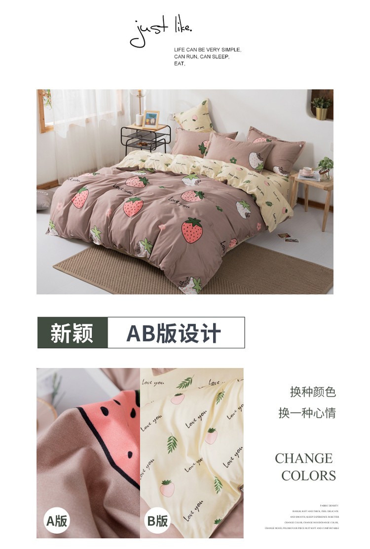 米粒 芦荟棉四件套 小草莓