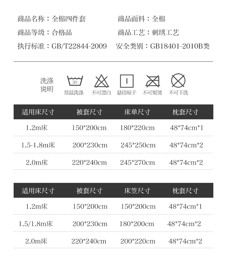(加大)1.8m床笠款四件套 | ¥165.00 |