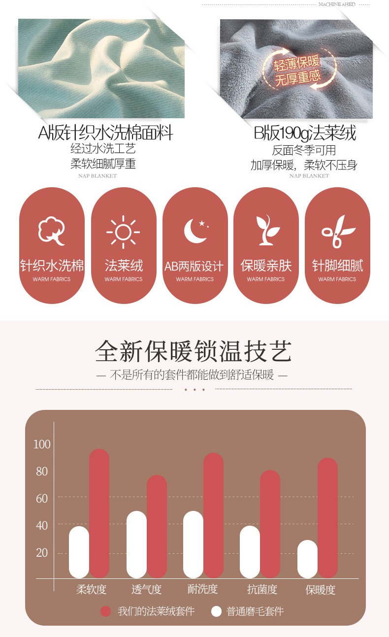 商品名称:凯儿家纺时尚法莱绒三件四件套牛奶雕花水晶绒