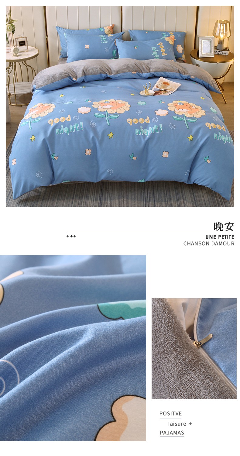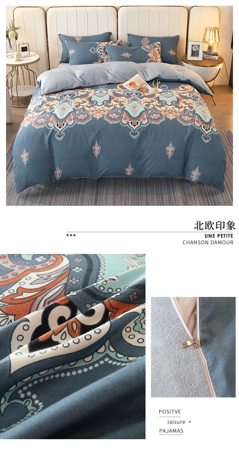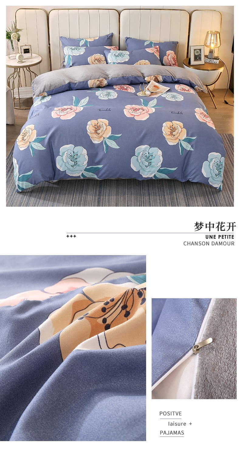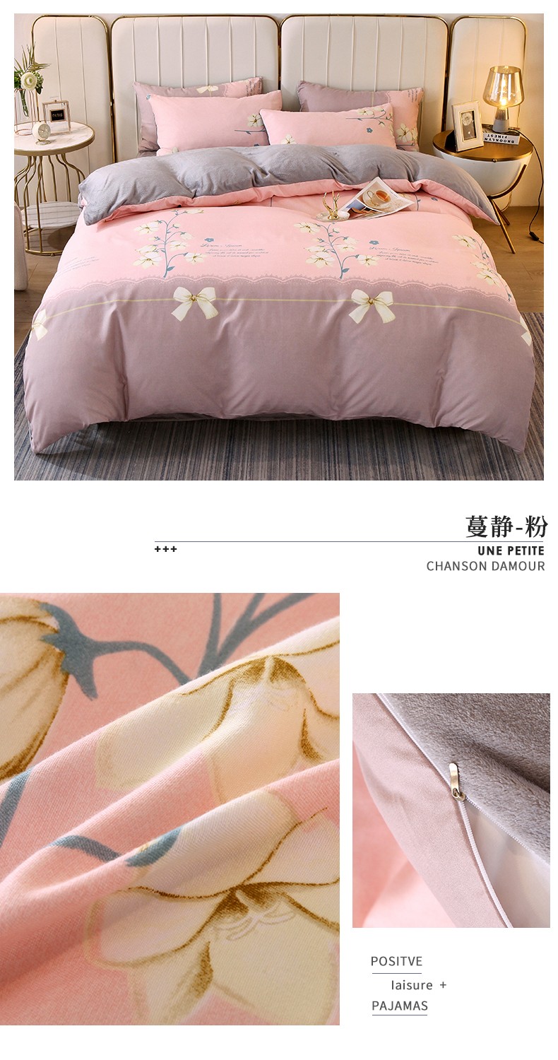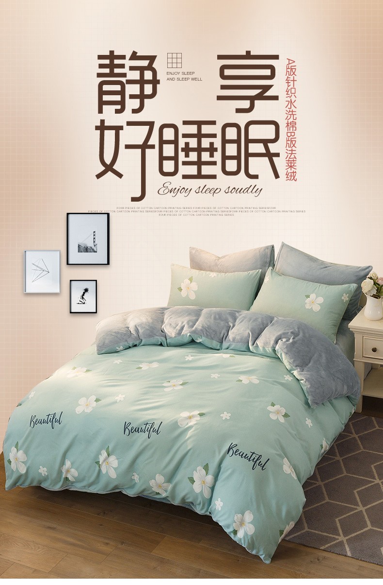 凯儿家纺时尚法莱绒三件四件套牛奶雕花水晶绒