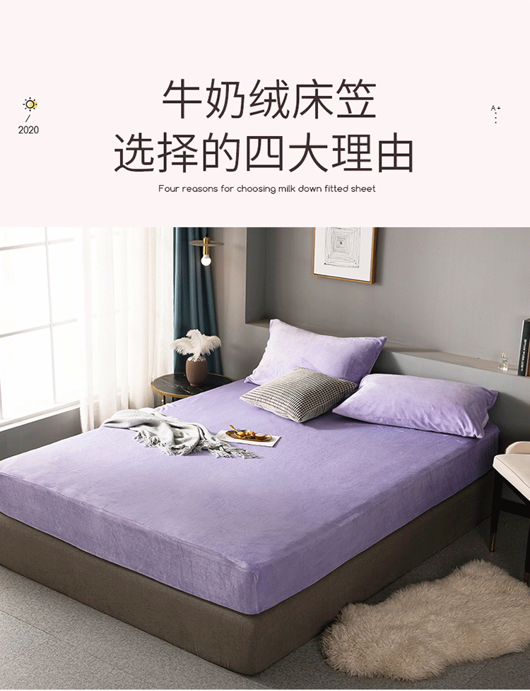 网客 2024新款牛奶绒床笠 安娜紫