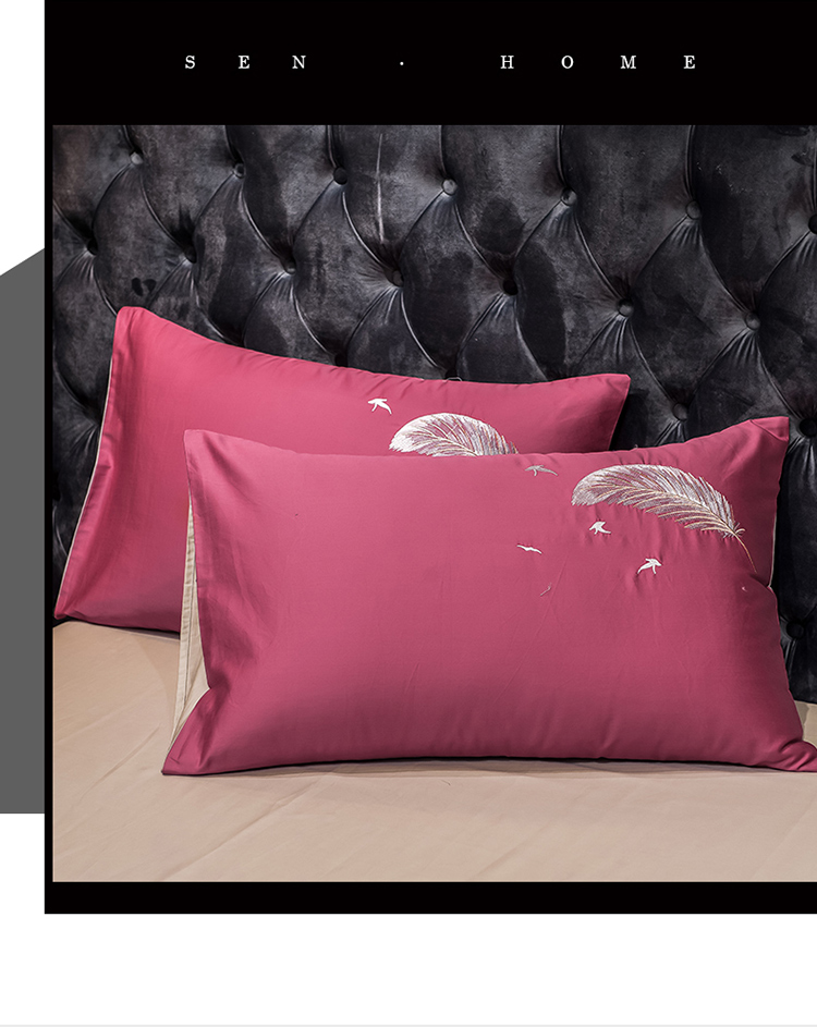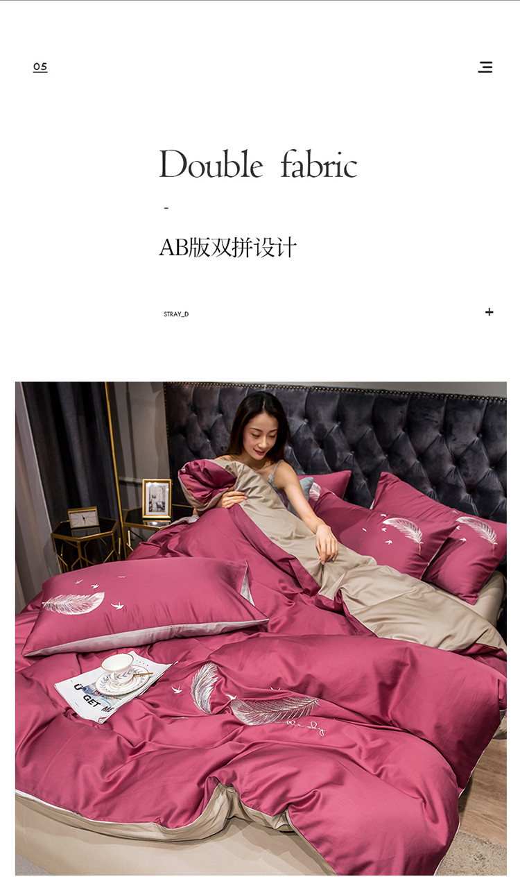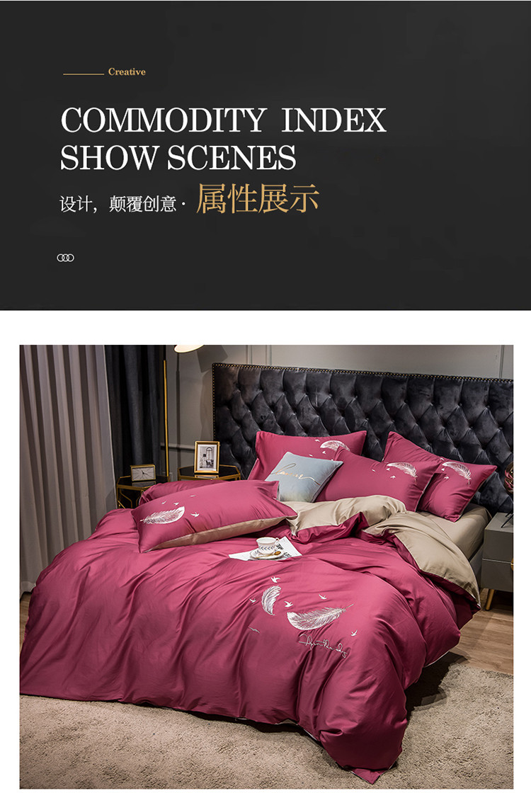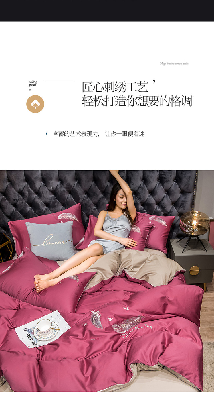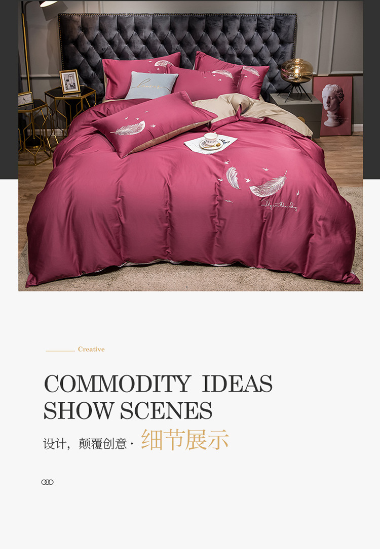 (总)骏腾 2022新款纯色水洗真丝刺绣四件套,羽毛-湖蓝,羽毛-米白,羽毛-墨绿,羽毛-深蓝,羽毛-天蓝,羽毛-银灰